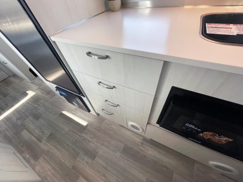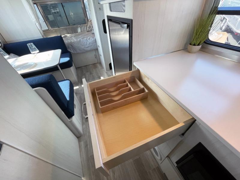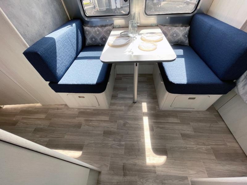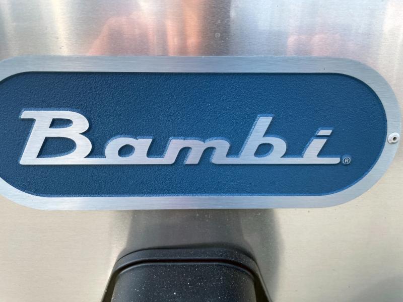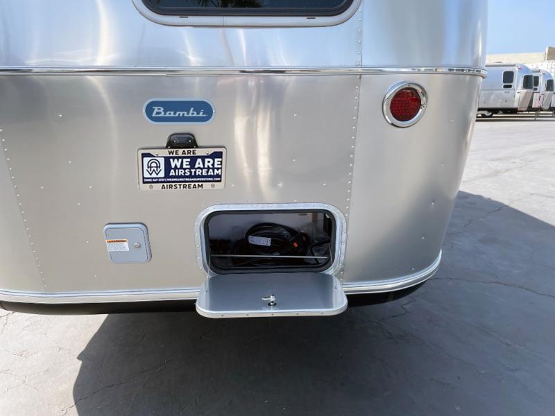 The lightweight, easy-to-maneuver Bambi travel trailer by Airstream is your ticket to outdoor fun and adventure. The panoramic front windows with blackout shades will provide natural lighting during the day, and privacy at night, and the seamless vinyl flooring will be easy to keep clean. Each model includes an efficient A/C with a heat strip, roll top overhead cabinets, and Performatex dinette cushions that are stain resistant. You will appreciate the 12V USB-A and USB-C ports to keep your devices charged, and the 24" 12V HDTV will provide entertainment when the weather isn't cooperating. The Bambi travel trailers also include a powered hitch jack with a light, roller shades, and an optional solar charging system for off-grid capabilities!