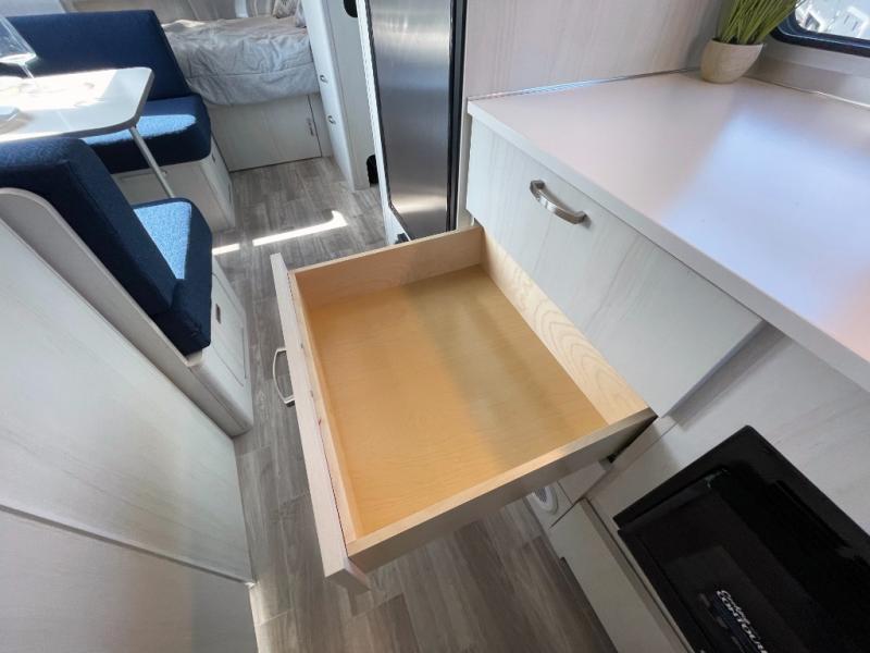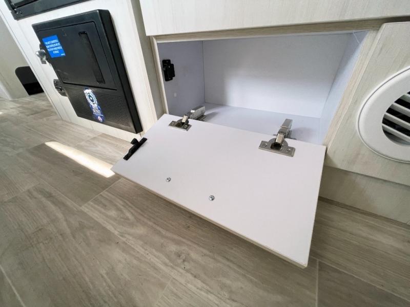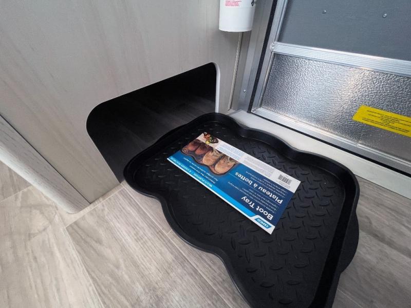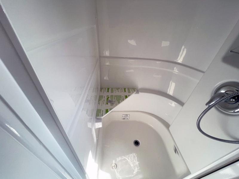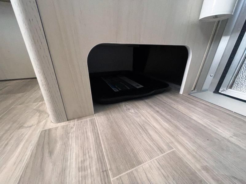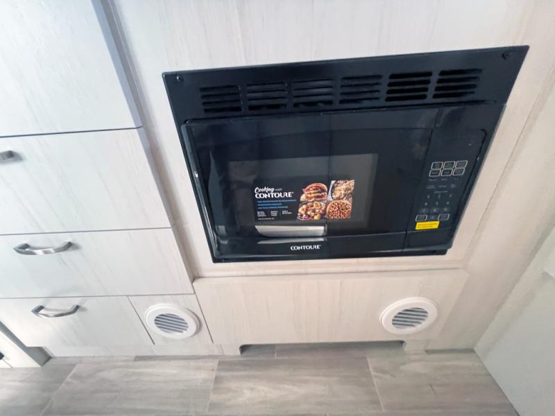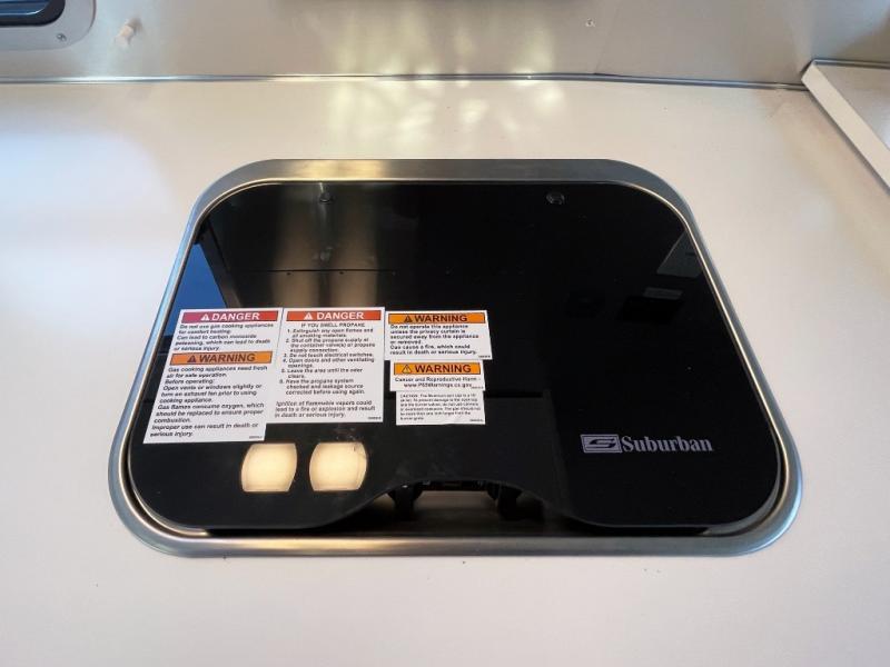 You're going to love every minute in this cozy travel trailer for four. The extra counter space in the rear corner kitchen provides more room to prepare meals, plus there is a two burner LP gas cooktop and a microwave oven to complete this area. The spacious full bath includes a shower with sleek countertops, a stainless steel sink, and cabinet storage for your toiletries. Your guests can sleep on the convertible dinette when it's not being used to dine at, and you'll have the front bed with a pillow top memory foam mattress all to yourselves. There is also a storage closet nearby to keep your clothes wrinkle-free!