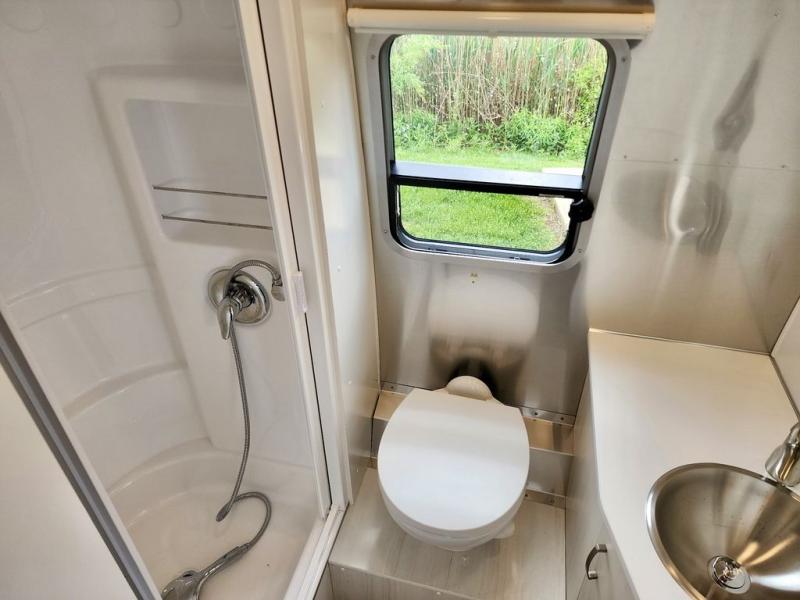The lightweight, easy-to-maneuver Bambi travel trailer by Airstream is your ticket to outdoor fun and adventure. The panoramic front windows with blackout shades will provide natural lighting during the day, and privacy at night, and the seamless vinyl flooring will be easy to keep clean. Each model includes an efficient A/C with a heat strip, roll top overhead cabinets, and Performatex dinette cushions that are stain resistant. You will appreciate the 12V USB-A and USB-C ports to keep your devices charged, and the 24" 12V HDTV will provide entertainment when the weather isn't cooperating. The Bambi travel trailers also include a powered hitch jack with a light, roller shades, and an optional solar charging system for off-grid capabilities!