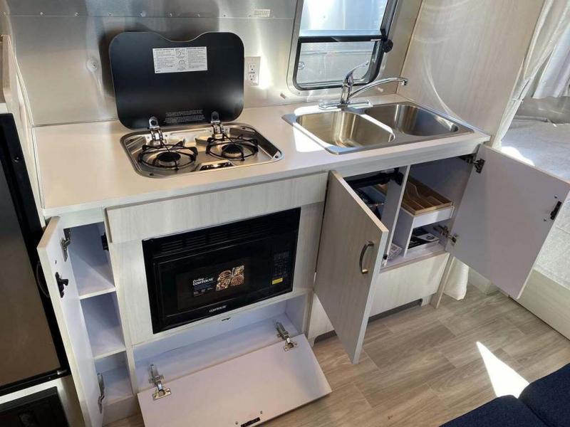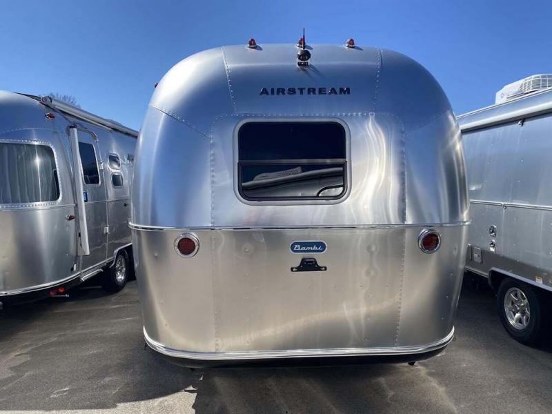 The lightweight, easy-to-maneuver Bambi travel trailer by Airstream is your ticket to outdoor fun and adventure. The panoramic front windows with blackout shades will provide natural lighting during the day, and privacy at night, and the seamless vinyl flooring will be easy to keep clean. Each model includes an efficient A/C with a heat strip, roll top overhead cabinets, and Performatex dinette cushions that are stain resistant. You will appreciate the 12V USB-A and USB-C ports to keep your devices charged, and the 24" 12V HDTV will provide entertainment when the weather isn't cooperating. The Bambi travel trailers also include a powered hitch jack with a light, roller shades, and an optional solar charging system for off-grid capabilities!