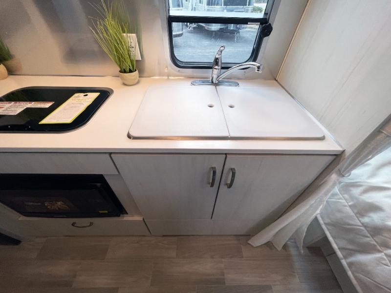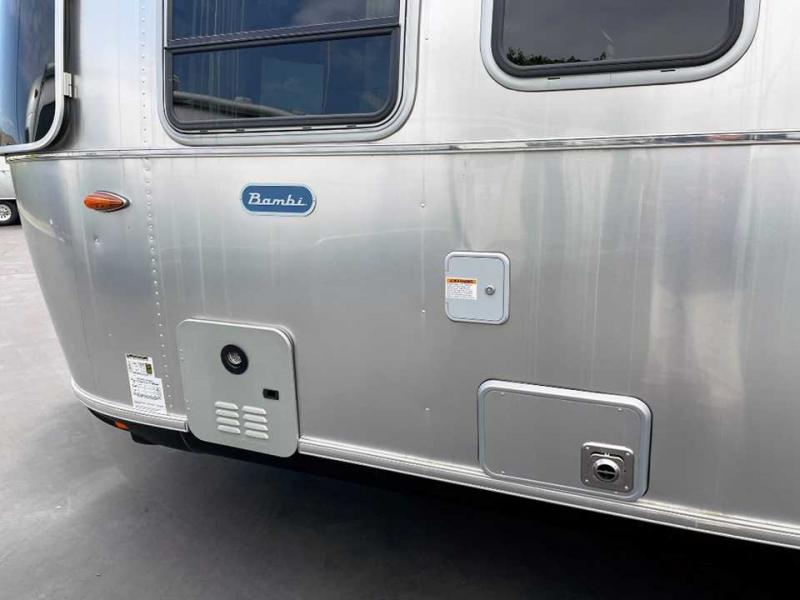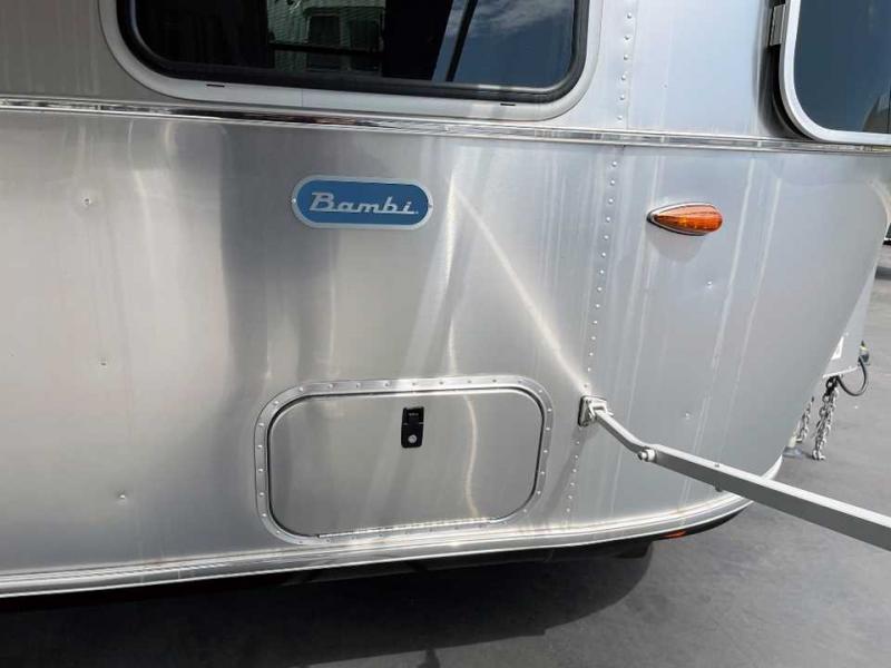 The lightweight, easy-to-maneuver Bambi travel trailer by Airstream is your ticket to outdoor fun and adventure. The panoramic front windows with blackout shades will provide natural lighting during the day, and privacy at night, and the seamless vinyl flooring will be easy to keep clean. Each model includes an efficient A/C with a heat strip, roll top overhead cabinets, and Performatex dinette cushions that are stain resistant. You will appreciate the 12V USB-A and USB-C ports to keep your devices charged, and the 24" 12V HDTV will provide entertainment when the weather isn't cooperating. The Bambi travel trailers also include a powered hitch jack with a light, roller shades, and an optional solar charging system for off-grid capabilities!