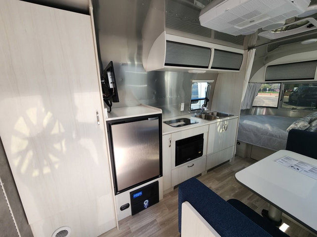 The lightweight, easy-to-maneuver Bambi travel trailer by Airstream is your ticket to outdoor fun and adventure. The panoramic front windows with blackout shades will provide natural lighting during the day, and privacy at night, and the seamless vinyl flooring will be easy to keep clean. Each model includes an efficient A/C with a heat strip, roll top overhead cabinets, and Performatex dinette cushions that are stain resistant. You will appreciate the 12V USB-A and USB-C ports to keep your devices charged, and the 24" 12V HDTV will provide entertainment when the weather isn't cooperating. The Bambi travel trailers also include a powered hitch jack with a light, roller shades, and an optional solar charging system for off-grid capabilities!