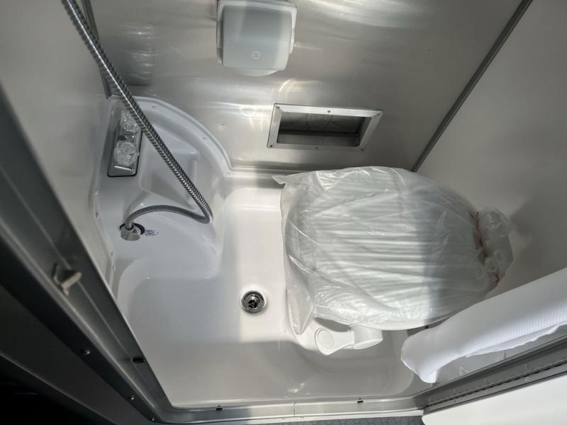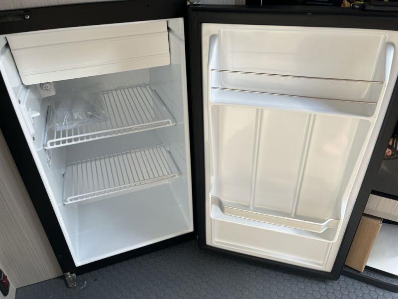 The X-Package takes durability to the next level with aggressive off-road tires, a lifted suspension, stainless-steel stone guards, and advanced protection designed to handle rough terrain. Inside, the versatile layout transforms from a cozy dining nook into a comfortable sleeping area, giving you flexibility for work, meals, and rest. The galley kitchen is compact yet capable, offering everything you need to prepare meals on the go. The wet bath provides essential comfort during extended stays, and the rear cargo door makes loading bikes, kayaks, and adventure gear quick and easy.