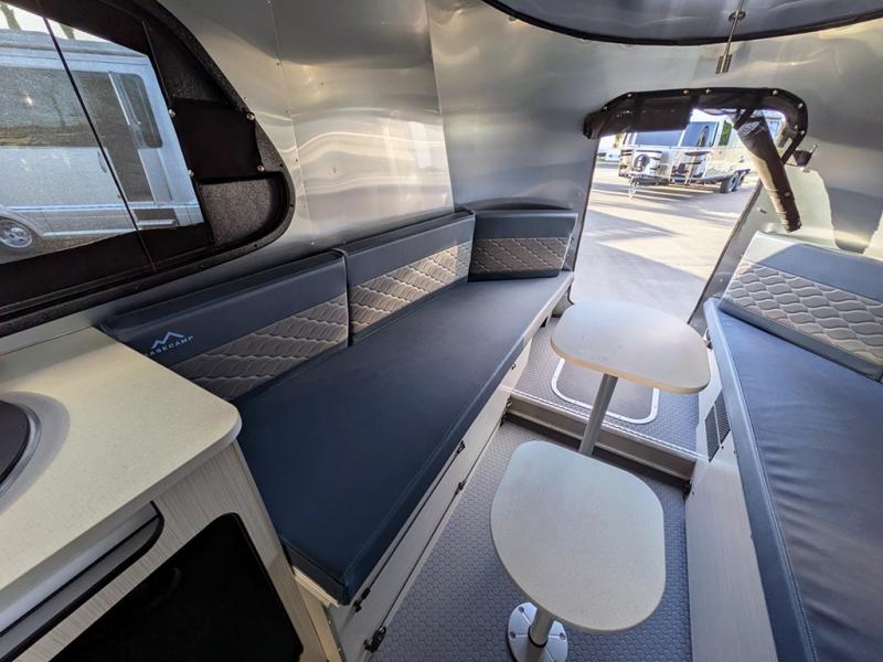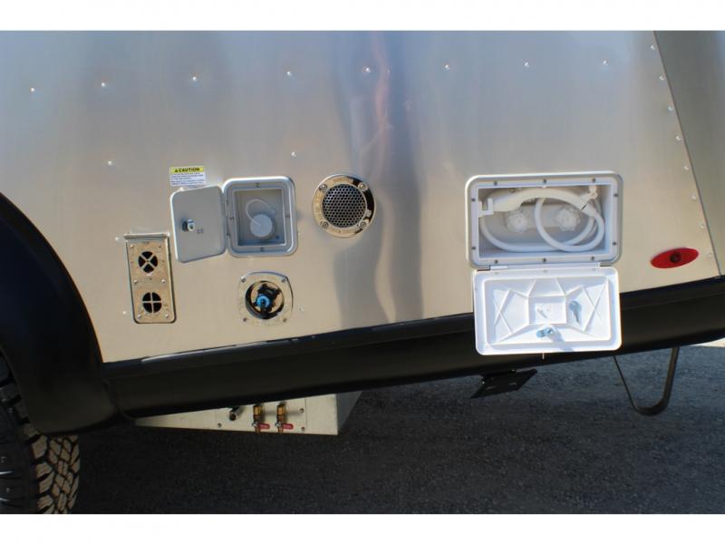 With any Basecamp travel trailer by Airstream, adventure knows no limits! The aggressive departure angle and large wheels are made specifically for handling uneven terrain, plus you can easily tow them with a variety of mid-size SUVs. The exterior includes a hand painted chassis, fluorocarbon treated UV protected aluminum, and a custom aluminum handcrafted entry door with window. You'll also find handcrafted welded extruded aluminum window frames, a torsion axle with shock absorbers, and Nev-R Adjust brakes. The interior offers Airstream Connected pre-wire, complete aluminum interior walls and ceiling, seating with Spradling stain resistant indoor/outdoor cushions and a laminate galley top, plus seamless vinyl flooring for durability and easy cleanup after all the adventures. A few features you will enjoy are the SmartPlug 30 Amp shore power, the aluminum Aircraft L-track storage system in the floor, and the optional fully enclosed tent, giving you the option to expand your outdoor living space!