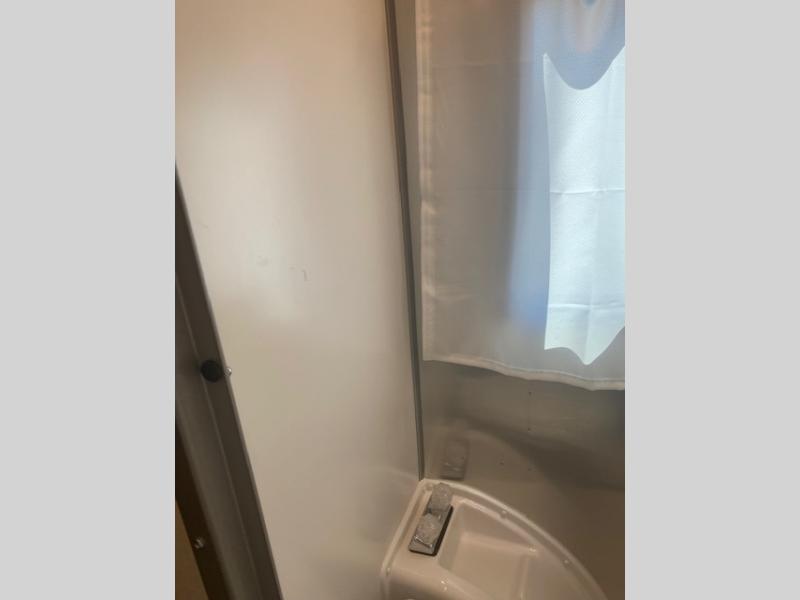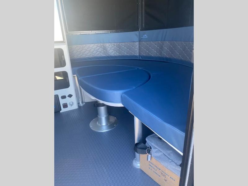 This travel trailer includes the Basecamp X Package that comes with stainless steel front stone guard protection, Goodyear off-road tires, and a 3" lift kit for added ground clearance. You can easily sleep everyone when using both the rear benches and the front U-shaped dinette. The benches provide split sleeping or a half-bed on one side and a full bed that spans the back of the trailer into an 82" x 78" area. There is storage under the cushions for the two removable tables that allow you to dine, work and relax with a place for your cellphones and such. The wet bath comes complete with a shower, sink and toilet so you can rinse off from a day outdoors, the galley kitchen gives the cook a place to make warm meals and store drinks and leftovers. This Basecamp also offers front panoramic windows, a steel entry step, a full-size spare tire, and a rear hatch allowing you to take your snowboards, skis, and paddle boards.