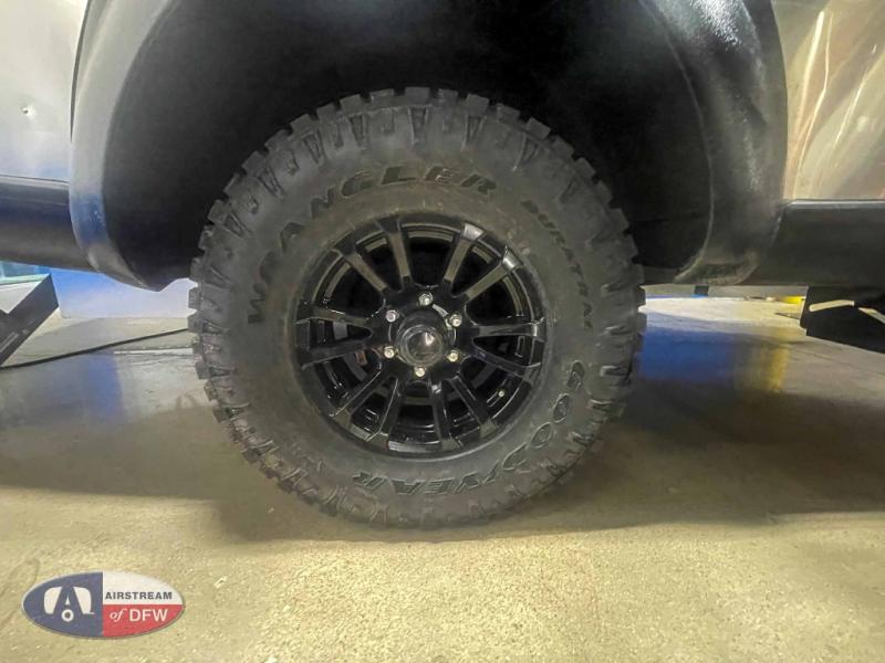 This travel trailer includes the Basecamp X Package that comes with stainless steel front stone guard protection, Goodyear off-road tires, and a 3" lift kit for added ground clearance. You can easily sleep everyone when using both the rear benches and the front U-shaped dinette. The benches provide split sleeping or a half-bed on one side and a full bed that spans the back of the trailer into an 82" x 78" area. There is storage under the cushions for the two removable tables that allow you to dine, work and relax with a place for your cellphones and such. The wet bath comes complete with a shower, sink and toilet so you can rinse off from a day outdoors, the galley kitchen gives the cook a place to make warm meals and store drinks and leftovers. This Basecamp also offers front panoramic windows, a steel entry step, a full-size spare tire, and a rear hatch allowing you to take your snowboards, skis, and paddle boards.
