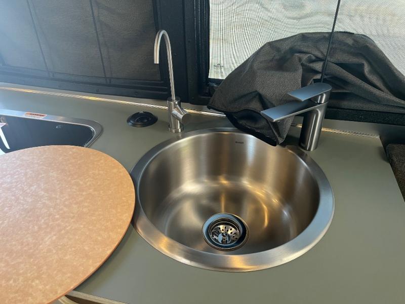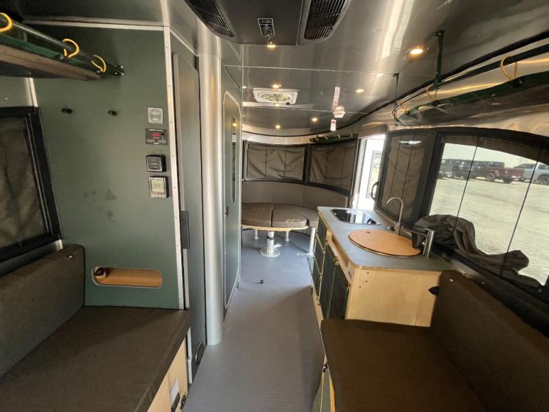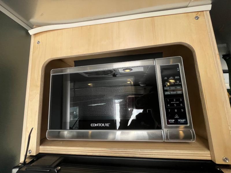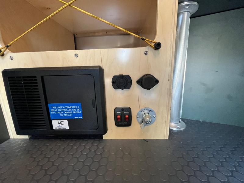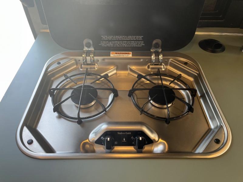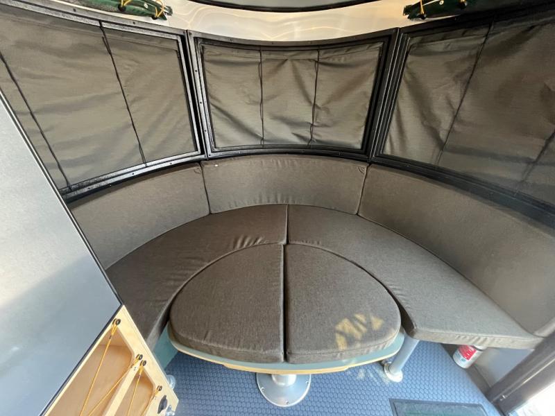 This travel trailer includes the Basecamp X Package that comes with stainless steel front stone guard protection, Goodyear off-road tires, and a 3" lift kit for added ground clearance. You can easily sleep everyone when using both the rear benches and the front U-shaped dinette. The benches provide split sleeping or a half-bed on one side and a full bed that spans the back of the trailer into an 82" x 78" area. There is storage under the cushions for the two removable tables that allow you to dine, work and relax with a place for your cellphones and such. The wet bath comes complete with a shower, sink and toilet so you can rinse off from a day outdoors, the galley kitchen gives the cook a place to make warm meals and store drinks and leftovers. This Basecamp also offers front panoramic windows, a steel entry step, a full-size spare tire, and a rear hatch allowing you to take your snowboards, skis, and paddle boards.