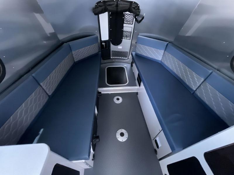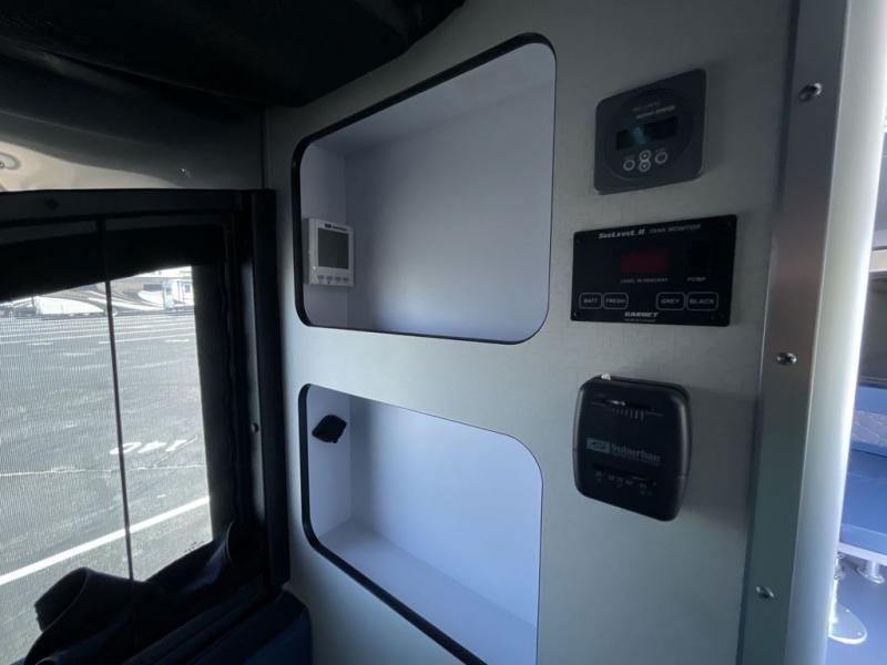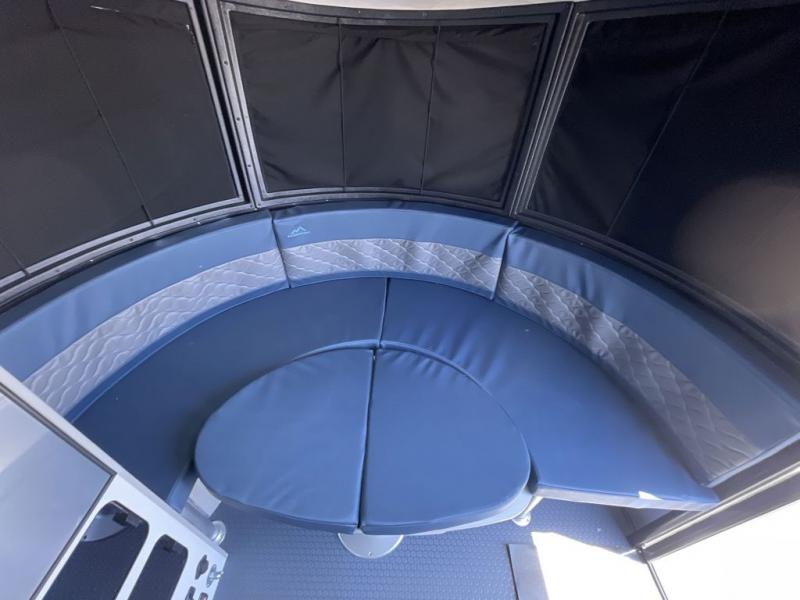 This travel trailer includes the Basecamp X Package that comes with stainless steel front stone guard protection, Goodyear off-road tires, and a 3" lift kit for added ground clearance. You can easily sleep everyone when using both the rear benches and the front U-shaped dinette. The benches provide split sleeping or a half-bed on one side and a full bed that spans the back of the trailer into an 82" x 78" area. There is storage under the cushions for the two removable tables that allow you to dine, work and relax with a place for your cellphones and such. The wet bath comes complete with a shower, sink and toilet so you can rinse off from a day outdoors, the galley kitchen gives the cook a place to make warm meals and store drinks and leftovers. This Basecamp also offers front panoramic windows, a steel entry step, a full-size spare tire, and a rear hatch allowing you to take your snowboards, skis, and paddle boards.