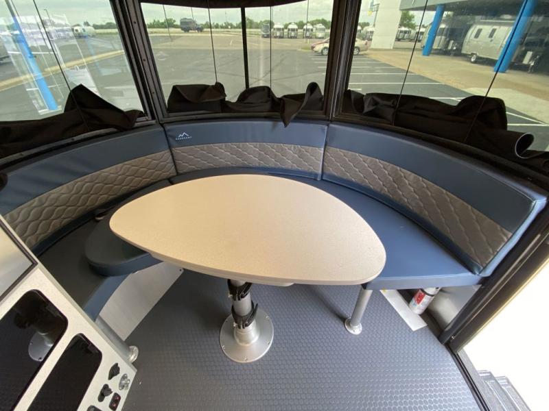 This travel trailer includes the Basecamp X Package that comes with stainless steel front stone guard protection, Goodyear off-road tires, and a 3" lift kit for added ground clearance. You can easily sleep everyone when using both the rear benches and the front U-shaped dinette. The benches provide split sleeping or a half-bed on one side and a full bed that spans the back of the trailer into an 82" x 78" area. There is storage under the cushions for the two removable tables that allow you to dine, work and relax with a place for your cellphones and such. The wet bath comes complete with a shower, sink and toilet so you can rinse off from a day outdoors, the galley kitchen gives the cook a place to make warm meals and store drinks and leftovers. This Basecamp also offers front panoramic windows, a steel entry step, a full-size spare tire, and a rear hatch allowing you to take your snowboards, skis, and paddle boards.