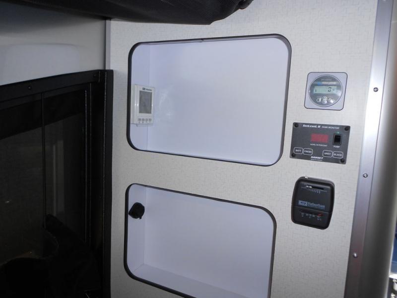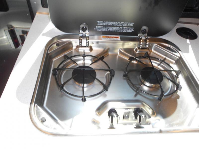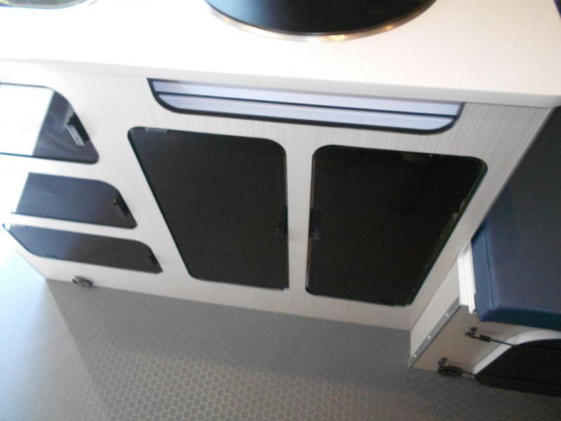 This travel trailer includes the Basecamp X Package that comes with stainless steel front stone guard protection, Goodyear off-road tires, and a 3" lift kit for added ground clearance. You can easily sleep everyone when using both the rear benches and the front U-shaped dinette. The benches provide split sleeping or a half-bed on one side and a full bed that spans the back of the trailer into an 82" x 78" area. There is storage under the cushions for the two removable tables that allow you to dine, work and relax with a place for your cellphones and such. The wet bath comes complete with a shower, sink and toilet so you can rinse off from a day outdoors, the galley kitchen gives the cook a place to make warm meals and store drinks and leftovers. This Basecamp also offers front panoramic windows, a steel entry step, a full-size spare tire, and a rear hatch allowing you to take your snowboards, skis, and paddle boards.