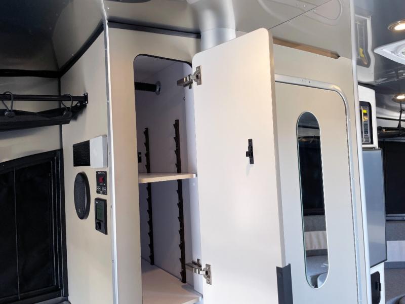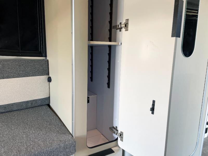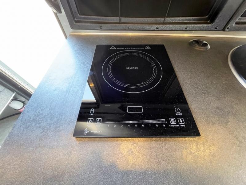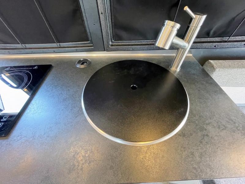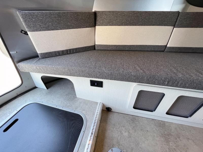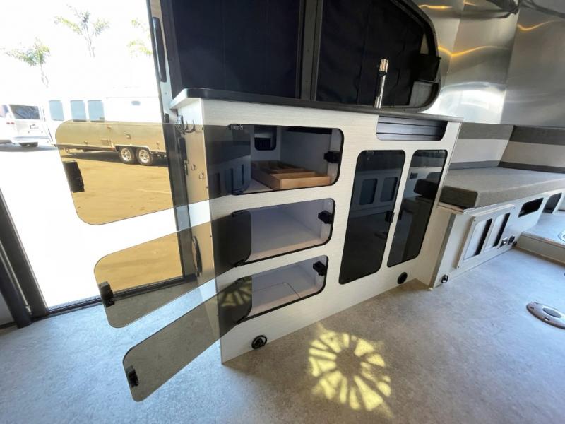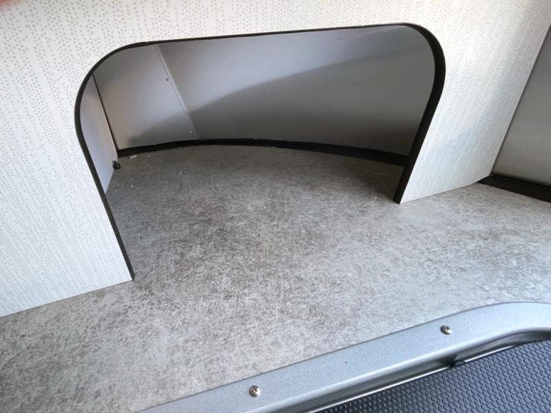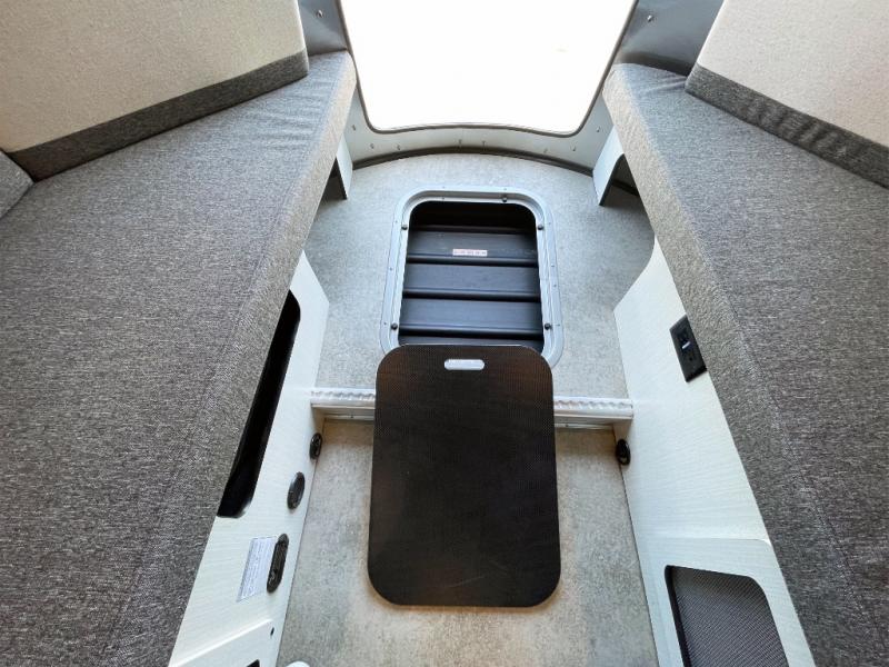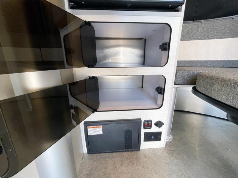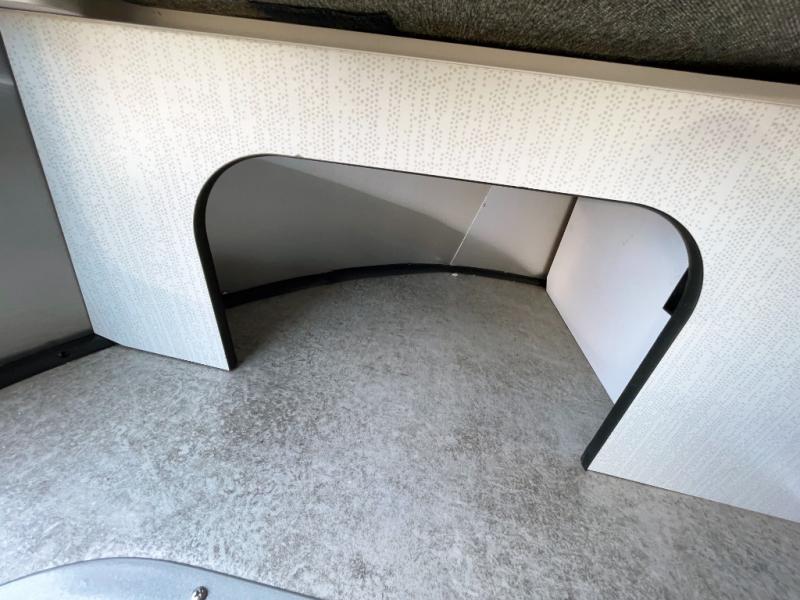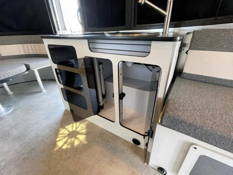 This travel trailer includes the Basecamp X Package that comes with stainless steel front stone guard protection, Goodyear off-road tires, and a 3" lift kit for added ground clearance. You can easily sleep everyone when using both the rear benches and the front U-shaped dinette. The benches provide split sleeping or a half-bed on one side and a full bed that spans the back of the trailer into an 82" x 78" area. There is storage under the cushions for the two removable tables that allow you to dine, work and relax with a place for your cellphones and such. The wet bath comes complete with a shower, sink and toilet so you can rinse off from a day outdoors, the galley kitchen gives the cook a place to make warm meals and store drinks and leftovers. This Basecamp also offers front panoramic windows, a steel entry step, a full-size spare tire, and a rear hatch allowing you to take your snowboards, skis, and paddle boards.