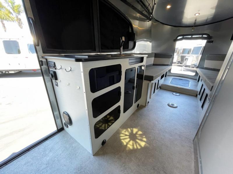 With any Basecamp travel trailer by Airstream, adventure knows no limits! The aggressive departure angle and large wheels are made specifically for handling uneven terrain, plus you can easily tow them with a variety of mid-size SUVs. The exterior includes a hand painted chassis, fluorocarbon treated UV protected aluminum, and a custom aluminum handcrafted entry door with window. You'll also find handcrafted welded extruded aluminum window frames, a torsion axle with shock absorbers, and Nev-R Adjust brakes. The interior offers Airstream Connected pre-wire, complete aluminum interior walls and ceiling, seating with Spradling stain resistant indoor/outdoor cushions and a laminate galley top, plus seamless vinyl flooring for durability and easy cleanup after all the adventures. A few features you will enjoy are the SmartPlug 30 Amp shore power, the aluminum Aircraft L-track storage system in the floor, and the optional fully enclosed tent, giving you the option to expand your outdoor living space!