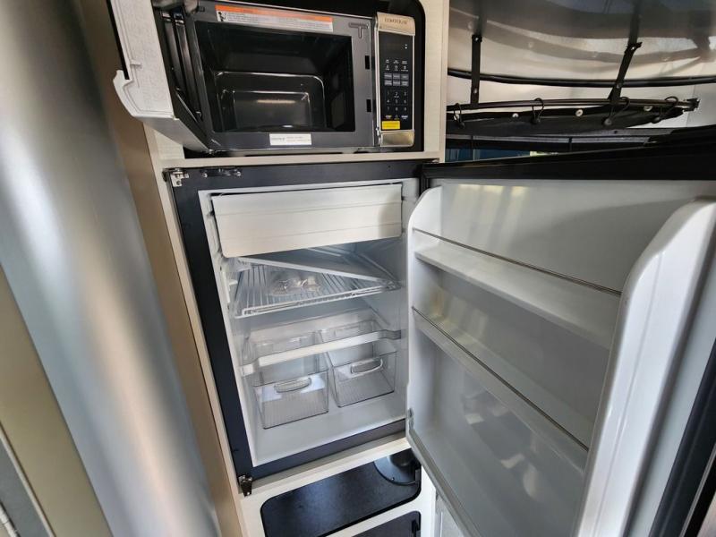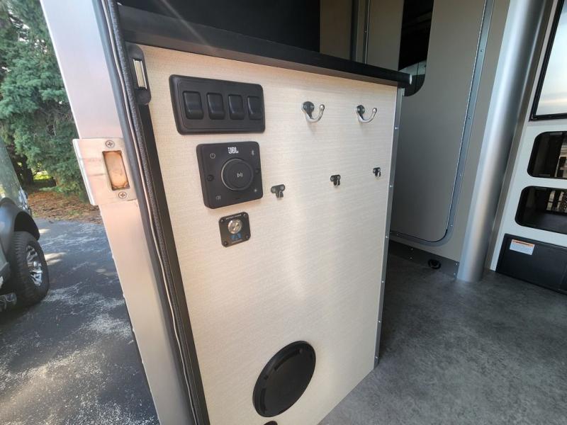 You can go farther than ever with the Basecamp Xe by Airstream! This travel tailer is powered by a 30A electrical system with a 3,000W inverter, a 10.3kWh lithium Battle Born battery pack and an impressive 600-watts of roof-mounted solar panels. There is coated stone guard protection plus a 3-inch lift kit with off-road tires that will help protect against rock and debris when traveling tough terrain. Head inside to find all the comforts of home, including a space-saving wet bath, a flexible living space, blackout shades, and seamless vinyl flooring. There are also USB ports to keep your electronics charged plus a JBL Audio stereo with Bluetooth connectivity and three speakers so you can listen to your favorite tunes!