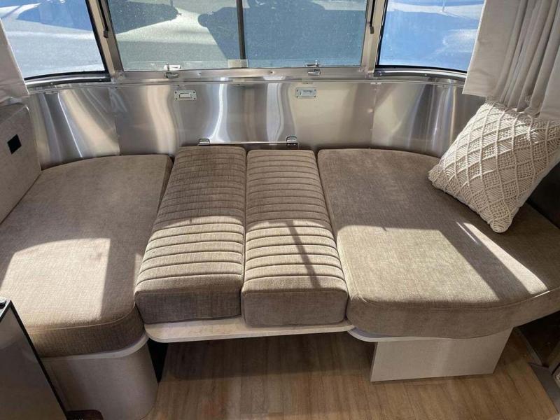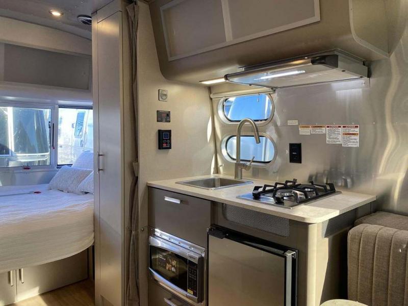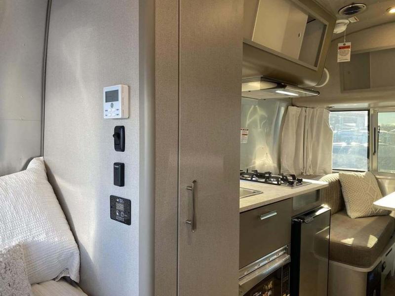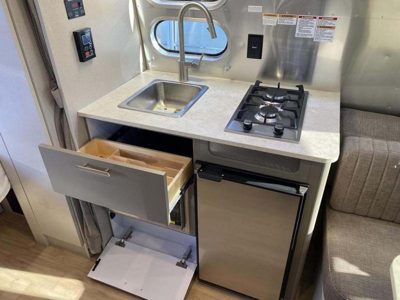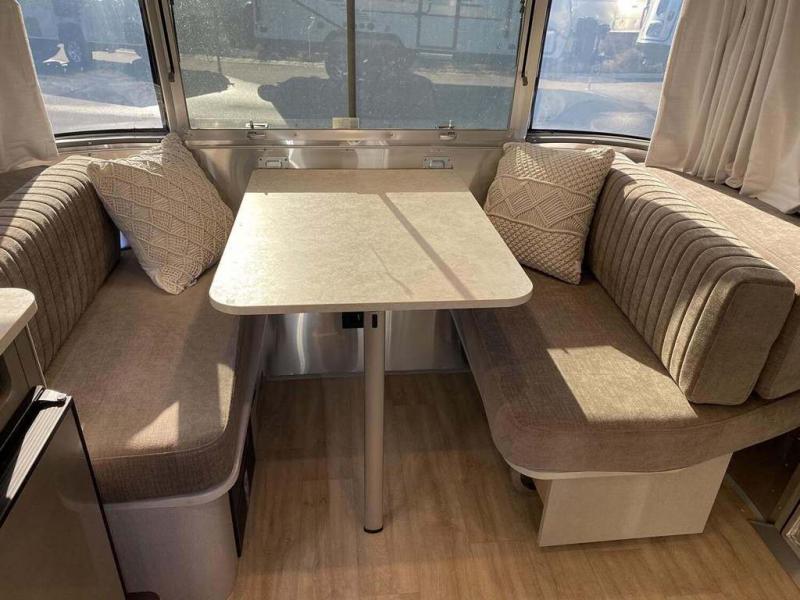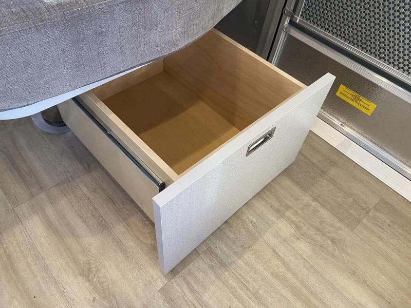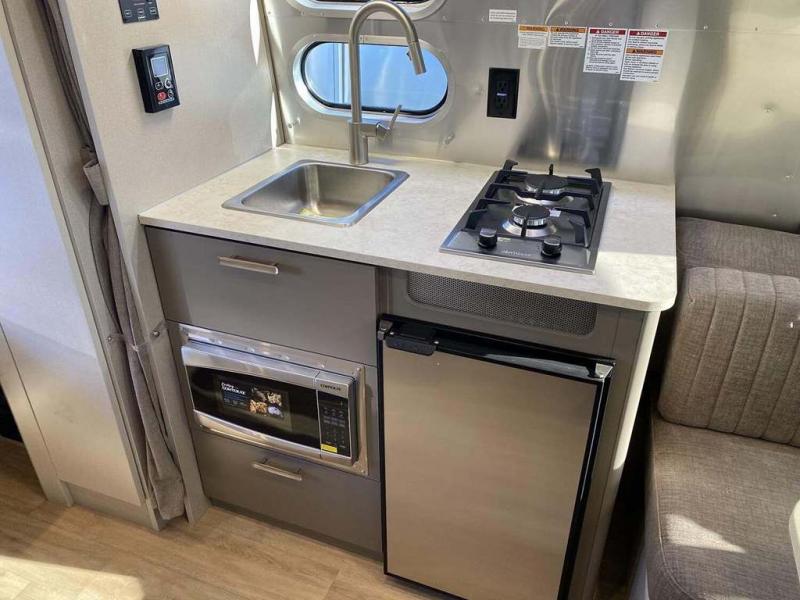 You'll always have a stylish and comfortable place to stay with the Airstream Caravel travel trailer! The manual Zip Dee patio awning can be paired with matching optional window awnings that can help keep the interior cool and private. The rear polished bumper with storage will help you keep your tools, cords, and more hidden away in a bonus storage space, and the JL Audio stereo with Bluetooth connectivity and four speakers, surround sound, and subwoofer will play your music throughout the trailer. You can stay powered while off the grid If you add the optional solar package, depending on the model you choose, and the blackout curtains will let you have privacy when you head to bed. The stainless steel front stone guard protection will prevent damage to the body of your trailer while towing, and the panoramic windows will make the interior fresh and bright with natural sunlight.