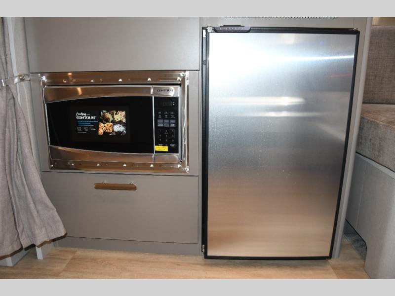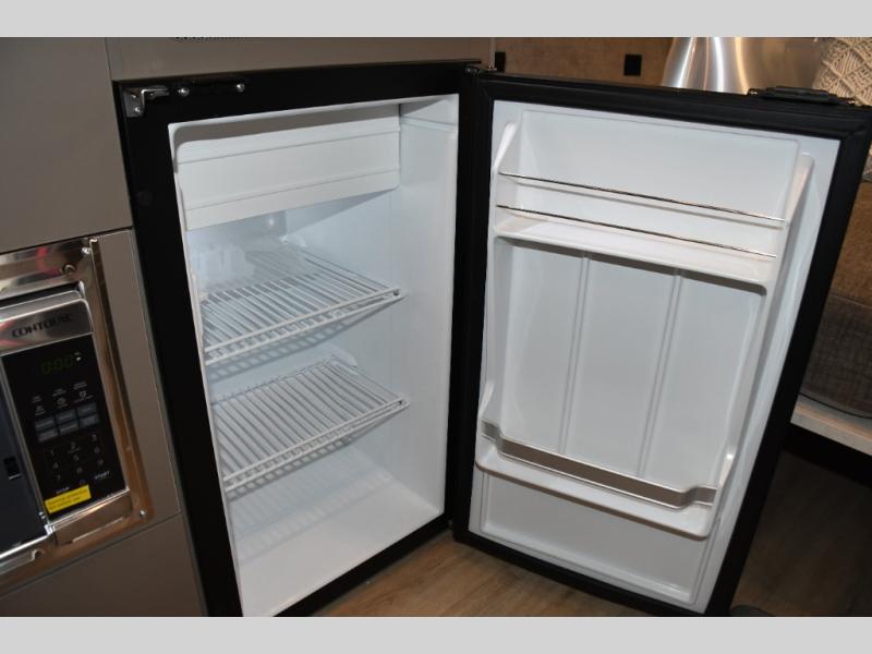 Inside, the Caravel 16RB feels bright, modern, and intentionally designed. Expansive panoramic windows fill the space with natural light, creating an open and inviting atmosphere. The front sleeping area offers a comfortable and efficient layout, while the surprisingly spacious rear bathroom provides privacy and convenience rarely found in travel trailers of this size.
