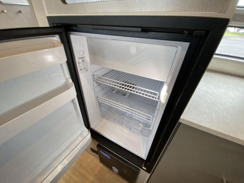 Would you like to enjoy unforgettable trips? If so, all you need is this Caravel travel trailer! The interior is outfitted with handcrafted marine-grade lite-ply laminated cabinetry, dimmable LED lighting, seamless vinyl flooring, and Ultraleather fabric on the furniture for a completely stylish and elegant look. The overhead storage has sliding doors for easy access, and the kitchen is quite engaging with its three-burner gas cooktop, microwave, stainless steel sink with Moen faucet, and Baraldi cooking vent with light. You can even use the LED reading lights at the pillowtop memory foam mattress to finish that last chapter before bed.