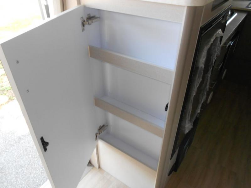 Would you like to enjoy unforgettable trips? If so, all you need is this Caravel travel trailer! The interior is outfitted with handcrafted marine-grade lite-ply laminated cabinetry, dimmable LED lighting, seamless vinyl flooring, and Ultraleather fabric on the furniture for a completely stylish and elegant look. The overhead storage has sliding doors for easy access, and the kitchen is quite engaging with its three-burner gas cooktop, microwave, stainless steel sink with Moen faucet, and Baraldi cooking vent with light. You can even use the LED reading lights at the pillowtop memory foam mattress to finish that last chapter before bed.