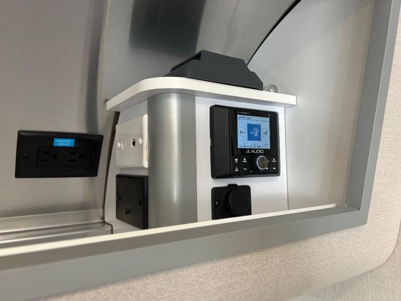 Would you like to enjoy unforgettable trips? If so, all you need is this Caravel travel trailer! The interior is outfitted with handcrafted marine-grade lite-ply laminated cabinetry, dimmable LED lighting, seamless vinyl flooring, and Ultraleather fabric on the furniture for a completely stylish and elegant look. The overhead storage has sliding doors for easy access, and the kitchen is quite engaging with its three-burner gas cooktop, microwave, stainless steel sink with Moen faucet, and Baraldi cooking vent with light. You can even use the LED reading lights at the pillowtop memory foam mattress to finish that last chapter before bed.