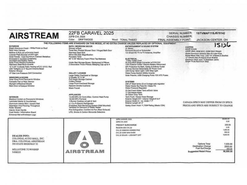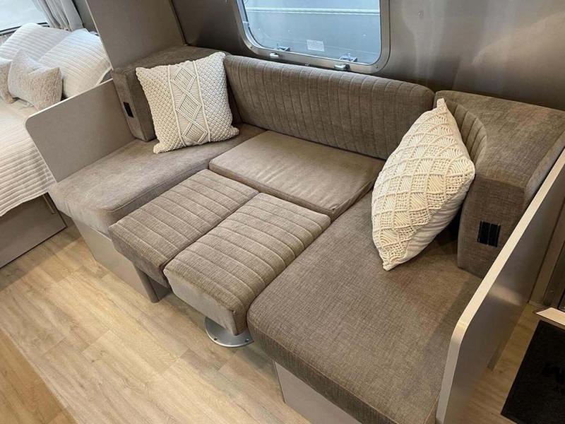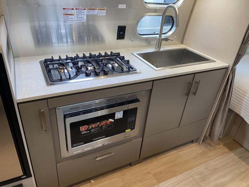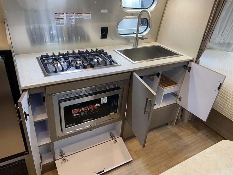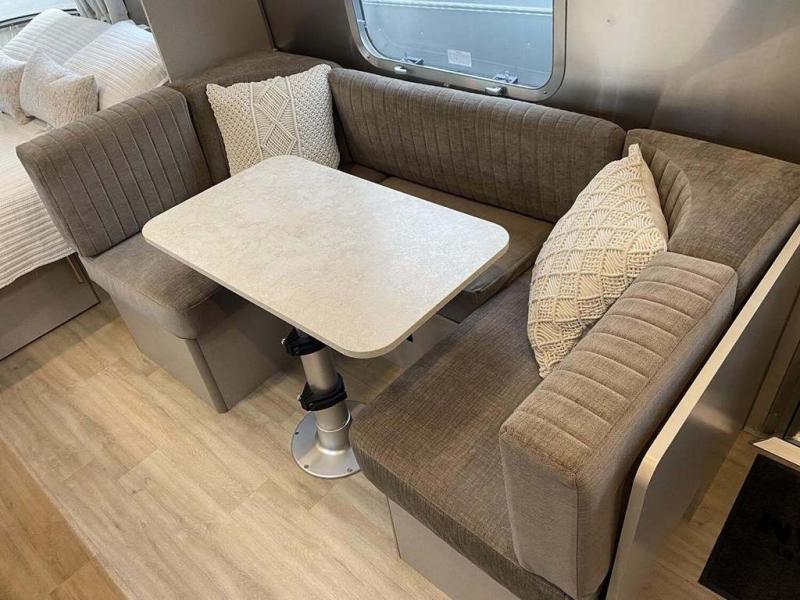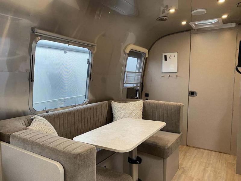 You'll always have a stylish and comfortable place to stay with the Airstream Caravel travel trailer! The manual Zip Dee patio awning can be paired with matching optional window awnings that can help keep the interior cool and private. The rear polished bumper with storage will help you keep your tools, cords, and more hidden away in a bonus storage space, and the JL Audio stereo with Bluetooth connectivity and four speakers, surround sound, and subwoofer will play your music throughout the trailer. You can stay powered while off the grid If you add the optional solar package, depending on the model you choose, and the blackout curtains will let you have privacy when you head to bed. The stainless steel front stone guard protection will prevent damage to the body of your trailer while towing, and the panoramic windows will make the interior fresh and bright with natural sunlight.
