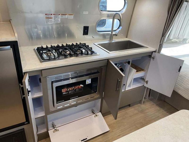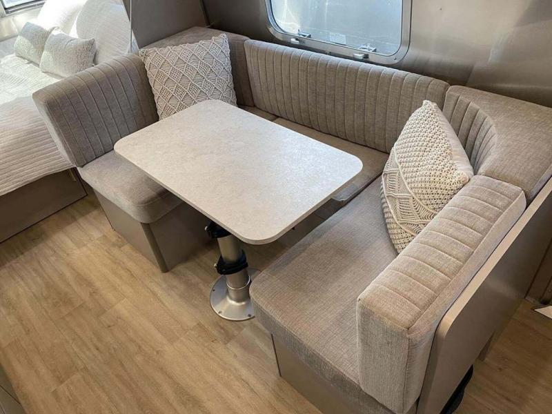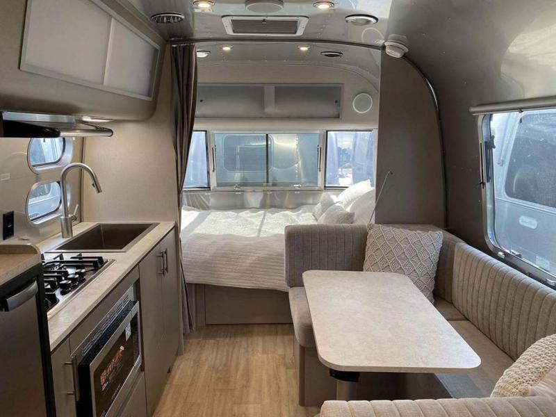 You'll always have a stylish and comfortable place to stay with the Airstream Caravel travel trailer! The manual Zip Dee patio awning can be paired with matching optional window awnings that can help keep the interior cool and private. The rear polished bumper with storage will help you keep your tools, cords, and more hidden away in a bonus storage space, and the JL Audio stereo with Bluetooth connectivity and four speakers, surround sound, and subwoofer will play your music throughout the trailer. You can stay powered while off the grid If you add the optional solar package, depending on the model you choose, and the blackout curtains will let you have privacy when you head to bed. The stainless steel front stone guard protection will prevent damage to the body of your trailer while towing, and the panoramic windows will make the interior fresh and bright with natural sunlight.