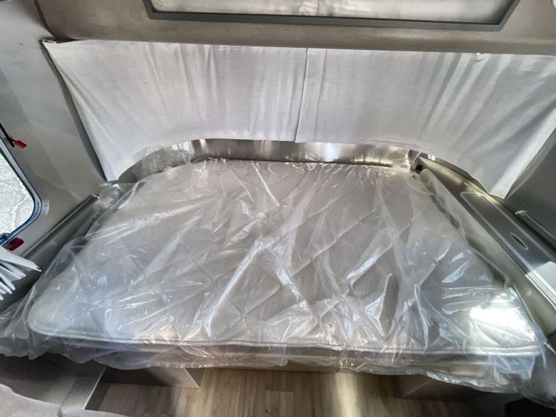 Experience comfort and style in the 2025 Airstream Caravel 22FB travel trailer. The rear full bath provides privacy and convenience with a large vanity, retractable clothesline, and removable handheld showerhead. The front full-size pillowtop memory foam bed fits perfectly within the trailer’s curves and offers under-bed storage for your essentials. Surrounding panoramic windows fill the interior with natural light while blackout curtains allow for restful nights.