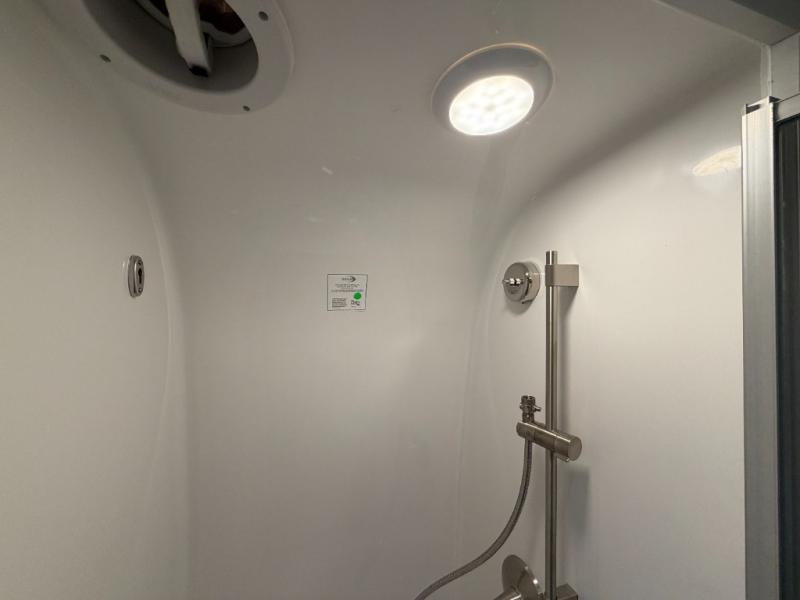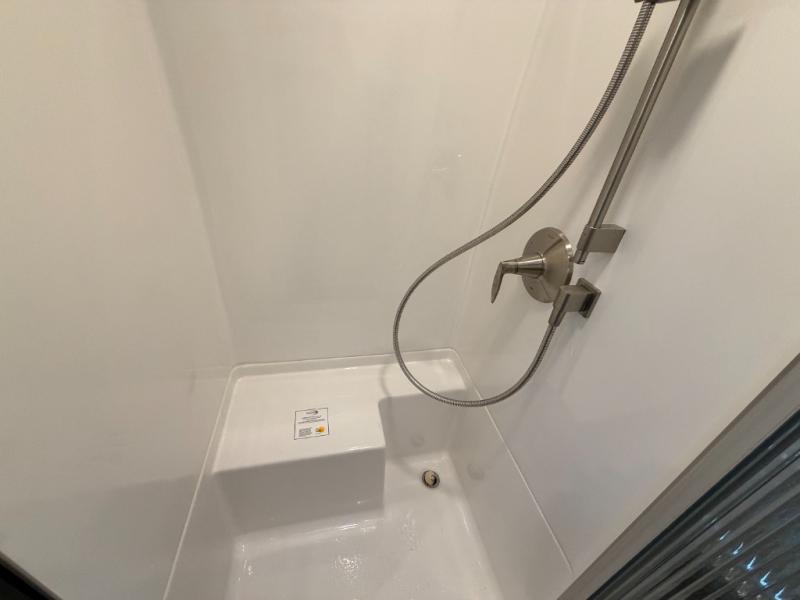 You'll have everything you need for a luxurious stay in this cozy travel trailer. The rear bedroom includes a power queen bed so you can adjust the head if you like to read at night, plus there are nightstands on either side of the bed for your phone, glasses, and a cup of water. You might also like to choose the optional twin beds in place of the queen bed, depending on your needs. The private toilet and vanity features plenty of counter space for your necessities, and the independent shower is just across the hall with its own door for privacy. Your crew will love to relax on the front powered lounge that has a perfect view of the 32" Smart TV with Bluetooth and this space can be converted to sleeping space for your guests, along with the powered dinette.