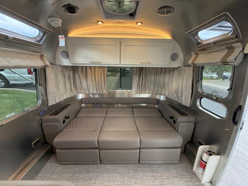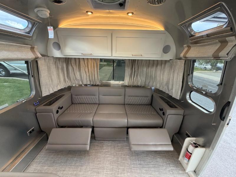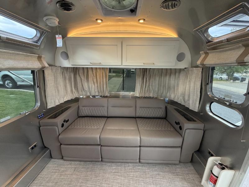 When it comes to full-time luxury living on the road, none other will do than a Classic travel trailer by Airstream. The sophisticated interior includes Ultraleather seating, a luxurious bathroom, handcrafted hardwood cabinetry, and a top-of-the-line kitchen with premium appliances. You will appreciate the rear-view monitoring system to easily park your trailer at the campsite, plus there are four powered heavy duty stabilizer jacks for easy set up. After you've unpacked, set up the powered ZipDee patio awning and adjust the LED dimmable awning light as you enjoy a cold drink. The Classic travel trailers also include QuietStream climate control that cools your unit quietly and evenly for a truly comfortable environment. Additional features you'll appreciate include a doorbell, a safe for valuables, two cushion ZipDee chairs, and premium environmental friendly insulation.
