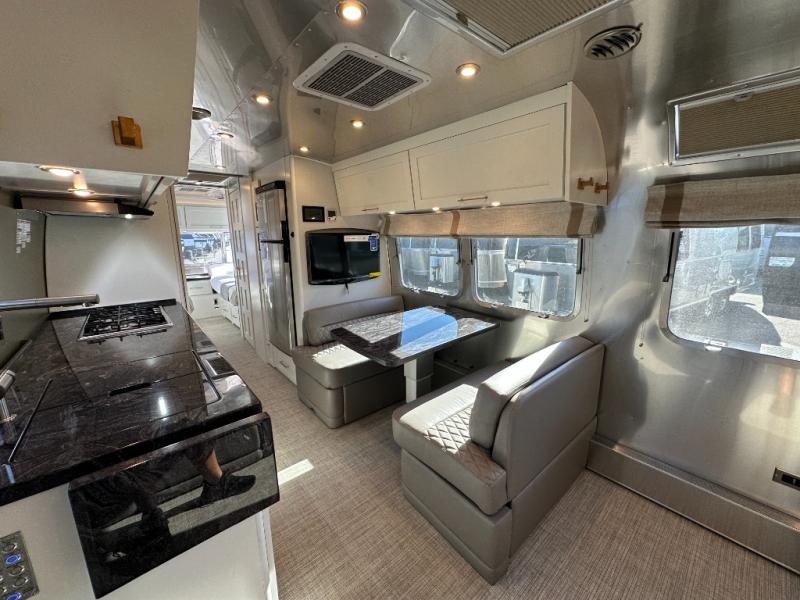 When it comes to full-time luxury living on the road, none other will do than a Classic travel trailer by Airstream. The sophisticated interior includes Ultraleather seating, a luxurious bathroom, handcrafted hardwood cabinetry, and a top-of-the-line kitchen with premium appliances. You will appreciate the rear-view monitoring system to easily park your trailer at the campsite, plus there are four powered heavy duty stabilizer jacks for easy set up. After you've unpacked, set up the powered ZipDee patio awning and adjust the LED dimmable awning light as you enjoy a cold drink. The Classic travel trailers also include QuiteStream climate control that cools your unit quietly and evenly for a truly comfortable environment! Additional features you'll appreciate include a doorbell, a safe for valuables, two cushion ZipDee chairs, and premium environmental friendly insulation.