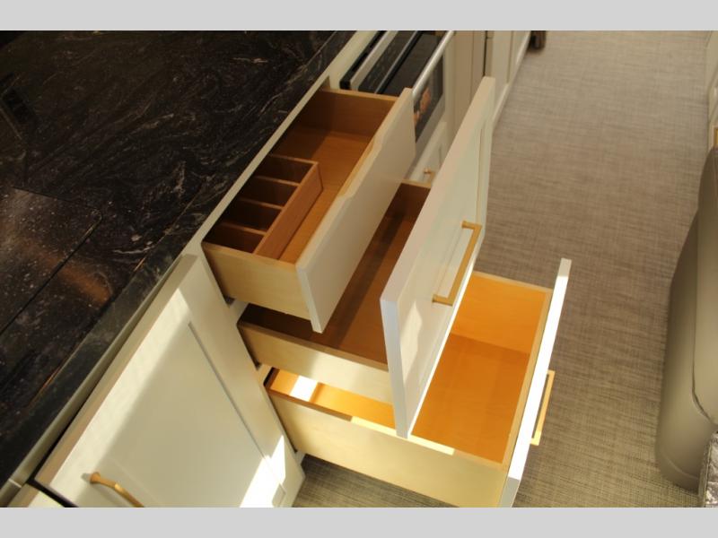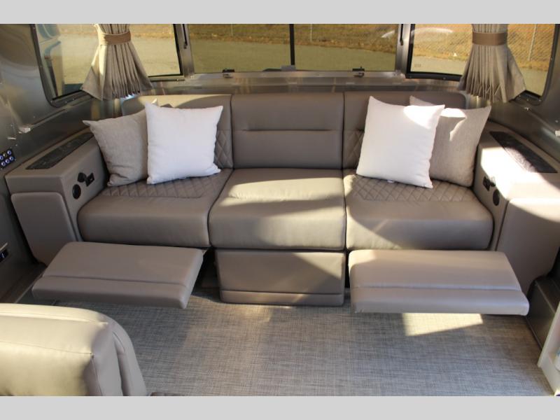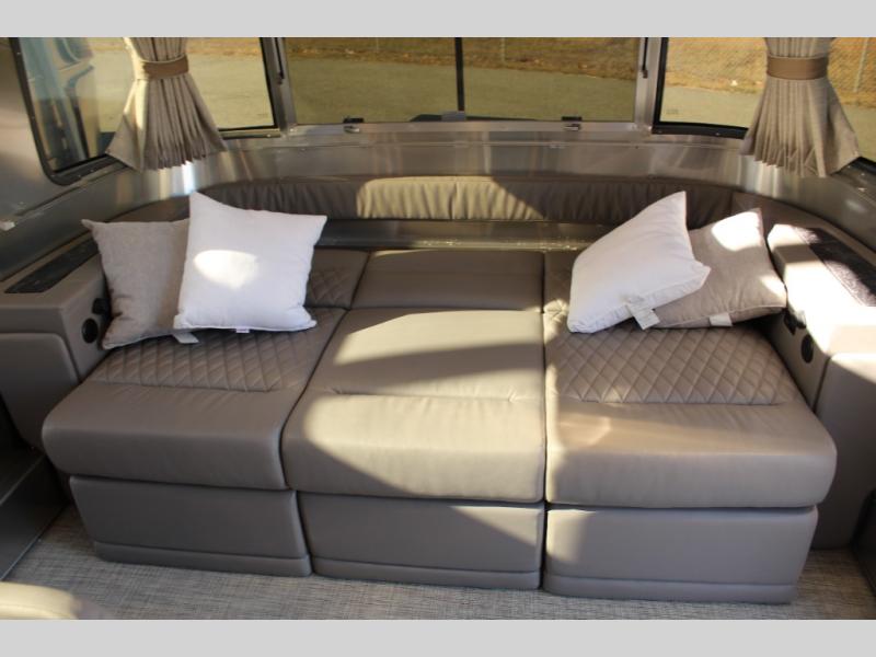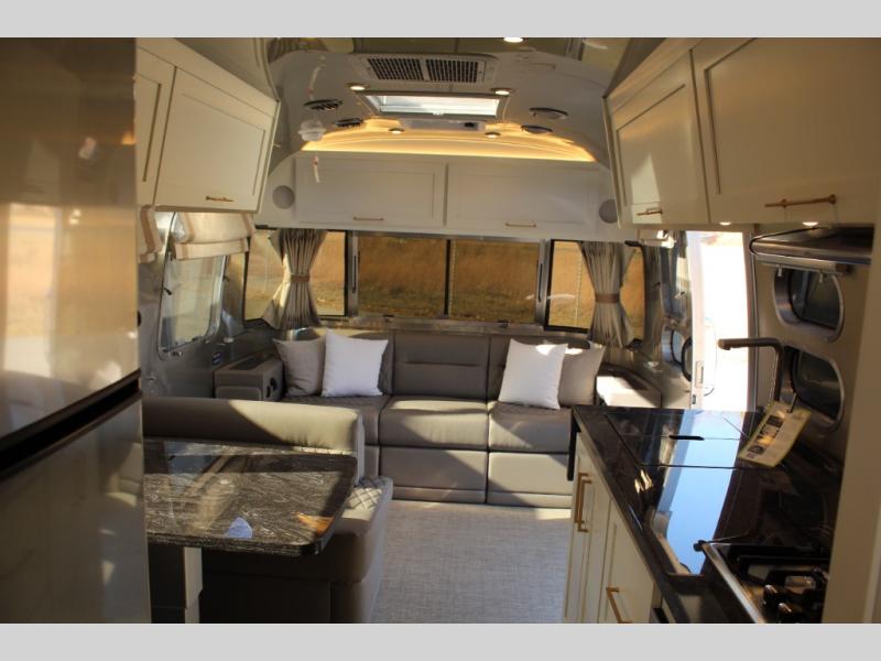 Airstream’s legendary aluminum shell, frameless panoramic windows, LED lighting, and power awning create a sleek, modern look with long-lasting durability.