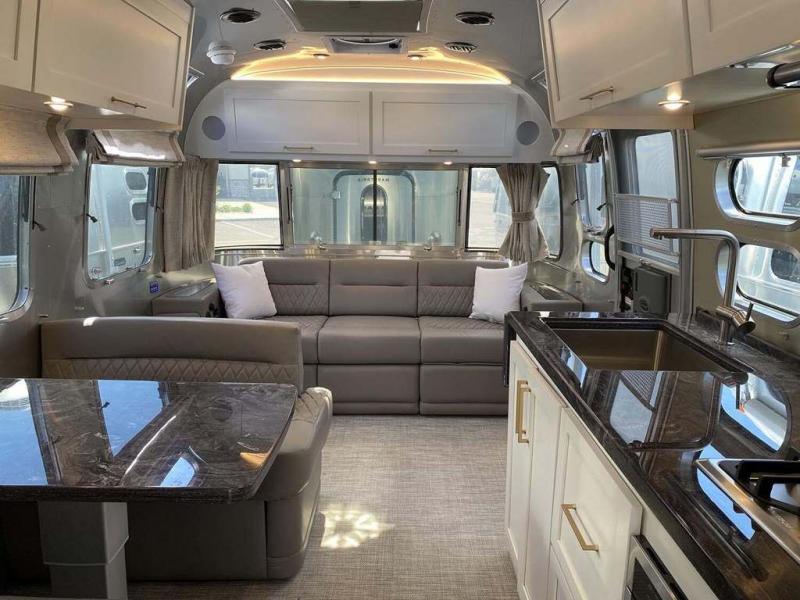 When it comes to full-time luxury living on the road, none other will do than a Classic travel trailer by Airstream. The sophisticated interior includes Ultraleather seating, a luxurious bathroom, handcrafted hardwood cabinetry, and a top-of-the-line kitchen with premium appliances. You will appreciate the rear-view monitoring system to easily park your trailer at the campsite, plus there are four powered heavy duty stabilizer jacks for easy set up. After you've unpacked, set up the powered ZipDee patio awning and adjust the LED dimmable awning light as you enjoy a cold drink. The Classic travel trailers also include QuietStream climate control that cools your unit quietly and evenly for a truly comfortable environment. Additional features you'll appreciate include a doorbell, a safe for valuables, two cushion ZipDee chairs, and premium environmental friendly insulation.