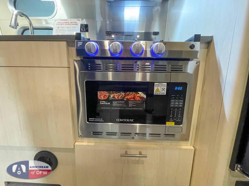 The family-friendly and popular Flying Cloud travel trailers by Airstream are built for ease of towing with a rear-view camera to make reversing and parking easier and stainless steel front stone guards to protect the lower segments from road debris. The iconic Airstream design is created outside and inside by the semi-monocoque aluminum superstructure, the temperature reducing one-piece white aluminum roof, the panoramic front windows, and the stylish aluminum wheels. The interior will have you feeling right at home with handcrafted cabinetry, plenty of storage and counter space, sleek roller blinds and blackout curtains, plus residential style faucets!
