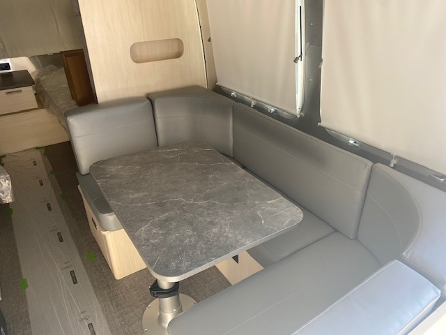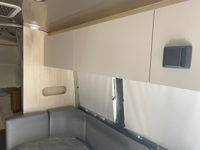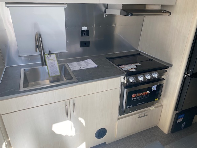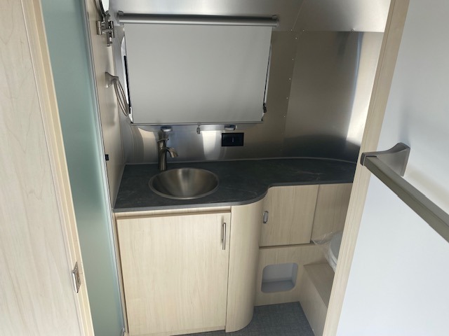 With each Flying Cloud travel trailer by Airstream, there are two axles, and each is built for ease of towing, plus there is a rear-view camera to make reversing and parking easier, and stainless steel front stone guards to protect the lower segments from road debris. The iconic Airstream design is created outside and inside by the semi-monocoque aluminum superstructure, the temperature reducing one-piece white aluminum roof, the panoramic front windows, and the stylish aluminum wheels. The interior will have you feeling right at home with handcrafted cabinetry, plenty of storage and counter space, sleek roller blinds and blackout curtains, plus residential style faucets!