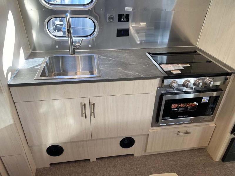 The family-friendly and popular Flying Cloud travel trailers by Airstream are built for ease of towing with a rear-view camera to make reversing and parking easier and stainless steel front stone guards to protect the lower segments from road debris. The iconic Airstream design is created outside and inside by the semi-monocoque aluminum superstructure, the temperature reducing one-piece white aluminum roof, the panoramic front windows, and the stylish aluminum wheels. The interior will have you feeling right at home with handcrafted cabinetry, plenty of storage and counter space, sleek roller blinds and blackout curtains, plus residential style faucets!