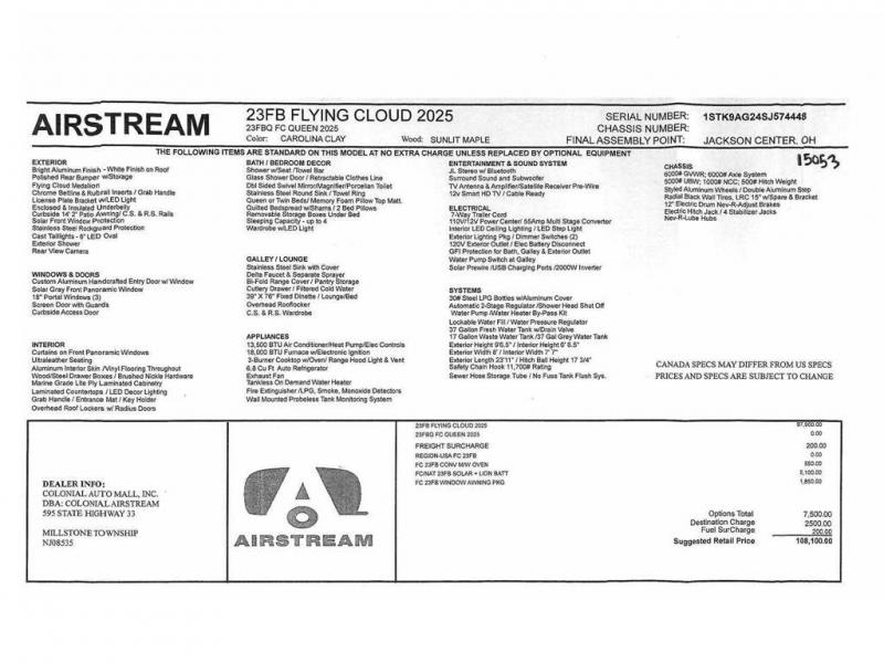 New 2025 Airstream Flying Cloud 23FBQ Queen Travel Trailer