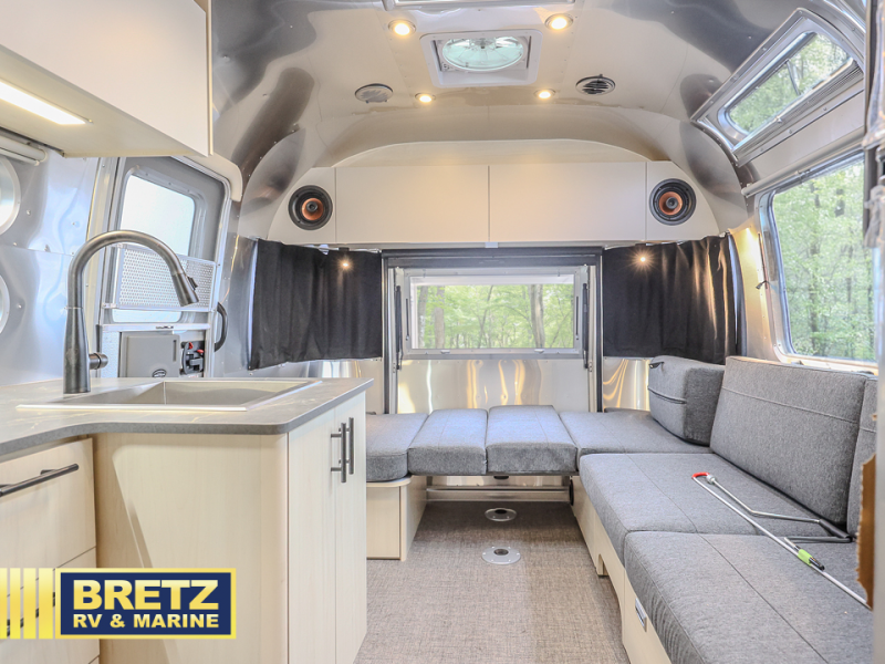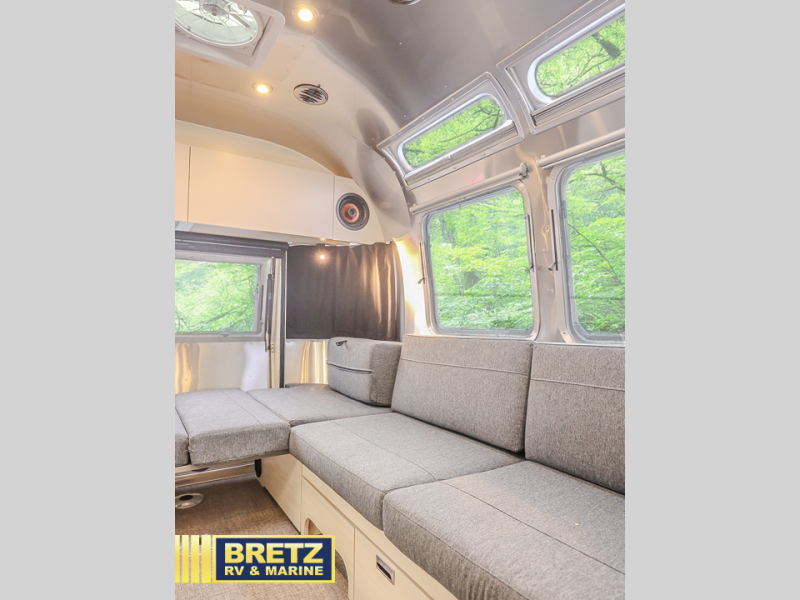 The family-friendly and popular Flying Cloud travel trailers by Airstream are built for ease of towing with a rear-view camera to make reversing and parking easier and stainless steel front stone guards to protect the lower segments from road debris. The iconic Airstream design is created outside and inside by the semi-monocoque aluminum superstructure, the temperature reducing one-piece white aluminum roof, the panoramic front windows, and the stylish aluminum wheels. The interior will have you feeling right at home with handcrafted cabinetry, plenty of storage and counter space, sleek roller blinds and blackout curtains, plus residential style faucets!