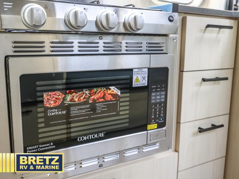 The family-friendly and popular Flying Cloud travel trailers by Airstream are built for ease of towing with a rear-view camera to make reversing and parking easier and stainless steel front stone guards to protect the lower segments from road debris. The iconic Airstream design is created outside and inside by the semi-monocoque aluminum superstructure, the temperature reducing one-piece white aluminum roof, the panoramic front windows, and the stylish aluminum wheels. The interior will have you feeling right at home with handcrafted cabinetry, plenty of storage and counter space, sleek roller blinds and blackout curtains, plus residential style faucets!