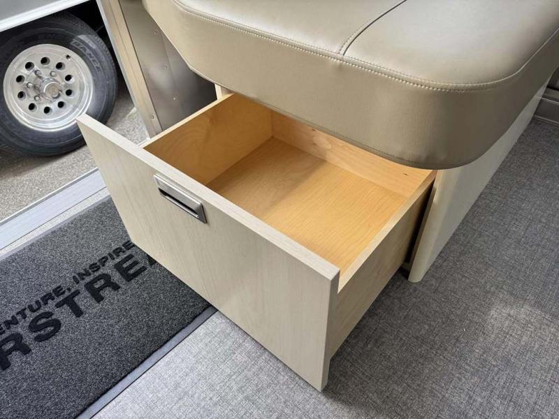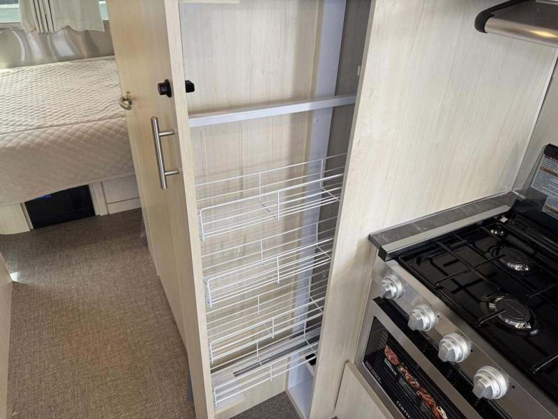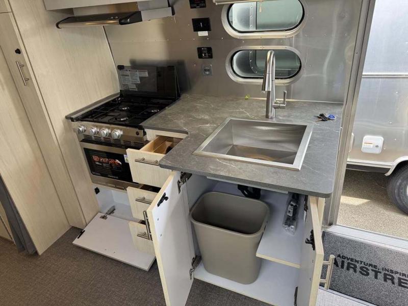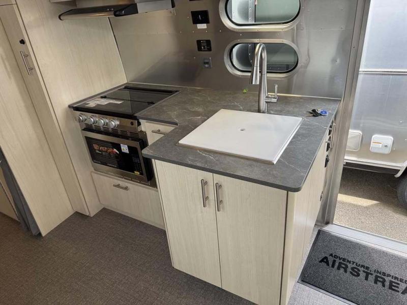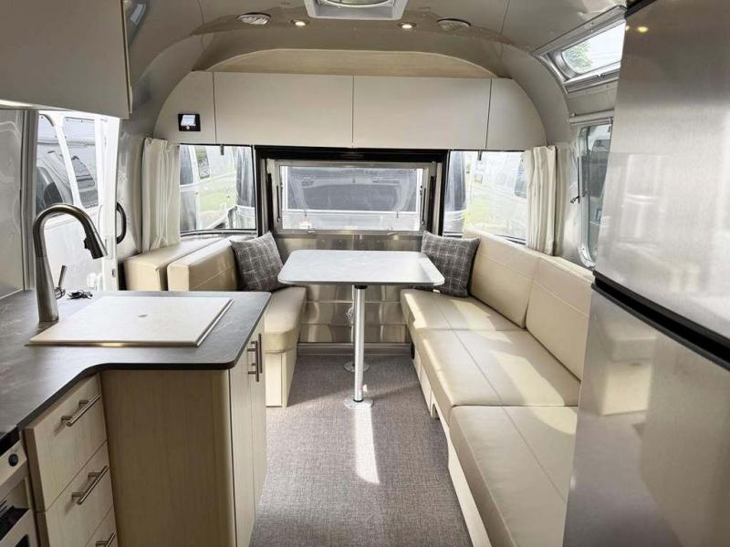The family-friendly and popular Flying Cloud travel trailers by Airstream are built for ease of towing with a rear-view camera to make reversing and parking easier and stainless steel front stone guards to protect the lower segments from road debris. The iconic Airstream design is created outside and inside by the semi-monocoque aluminum superstructure, the temperature reducing one-piece white aluminum roof, the panoramic front windows, and the stylish aluminum wheels. The interior will have you feeling right at home with handcrafted cabinetry, plenty of storage and counter space, sleek roller blinds and blackout curtains, plus residential style faucets!