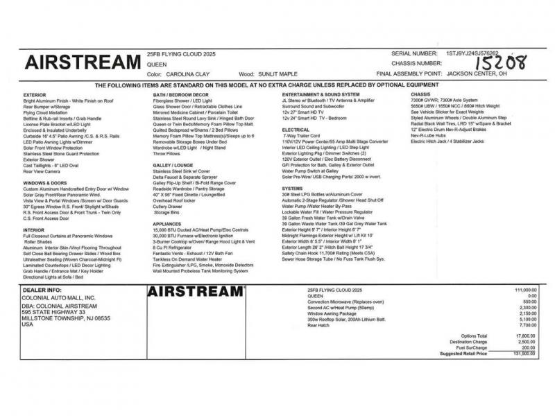 | Interior Color | Carolina Clay/Sunlit Maple |
