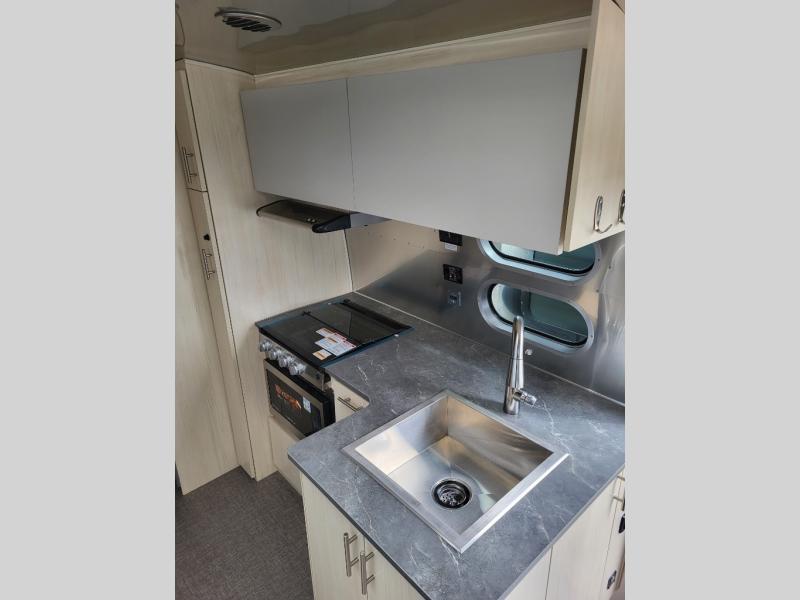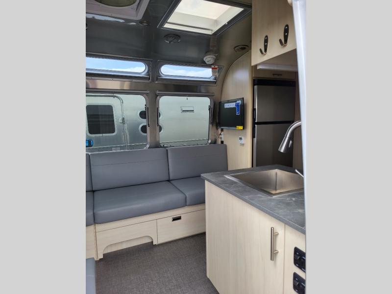 The family-friendly and popular Flying Cloud travel trailers by Airstream are built for ease of towing with a rear-view camera to make reversing and parking easier and stainless steel front stone guards to protect the lower segments from road debris. The iconic Airstream design is created outside and inside by the semi-monocoque aluminum superstructure, the temperature reducing one-piece white aluminum roof, the panoramic front windows, and the stylish aluminum wheels. The interior will have you feeling right at home with handcrafted cabinetry, plenty of storage and counter space, sleek roller blinds and blackout curtains, plus residential style faucets!