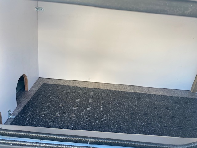 When you enjoy the finer things when traveling, this trailer will provide that for you plus lots of natural lighting and plenty of conveniences. The convertible rear dinette offers a place to dine and socialize for four, and there is a lounging area along the side with a TV on the wall. The table acts as a sturdy base below the cushions when you need some sleeping space. The front bedroom offers more panoramic windows and comfortable twin beds with a view each morning and night. There is floor space in the center and a nightstand for extra storage and charging space. You will find storage for your clothing, and a split bathroom with a half bath on one side and a shower that stands independently across the hall. And the kitchen offers everything you need to make meals including extra counter space and a refrigerator for leftovers. And there is a rear hatch option for this trailer.