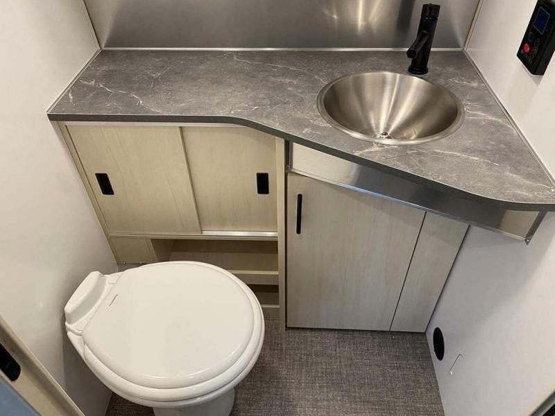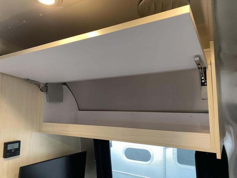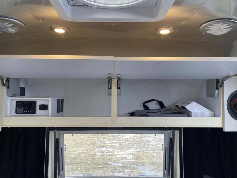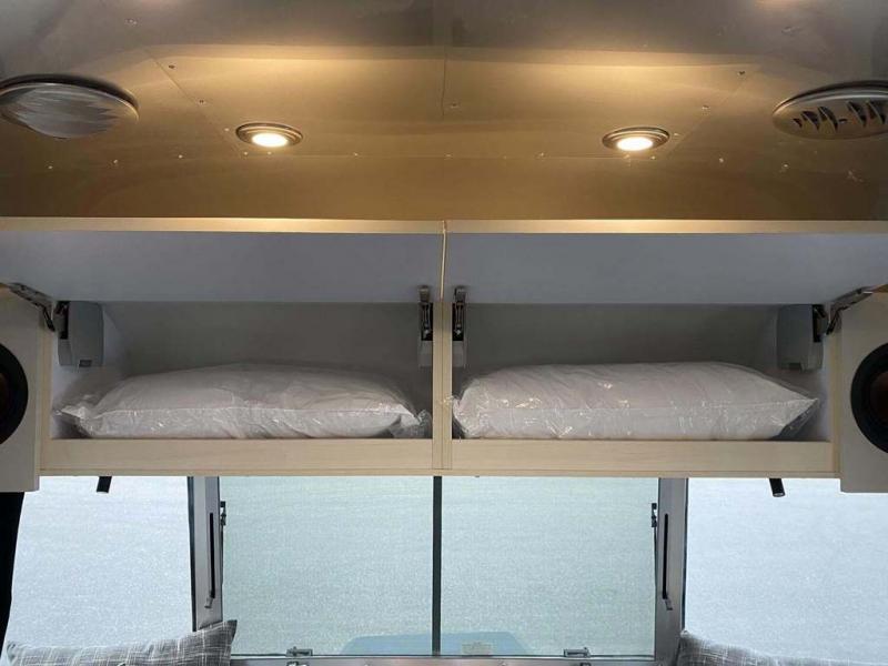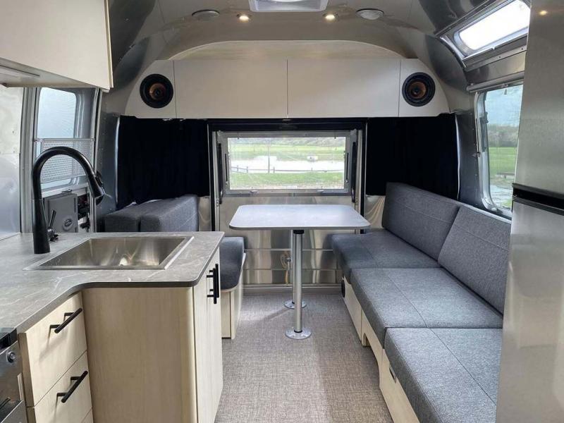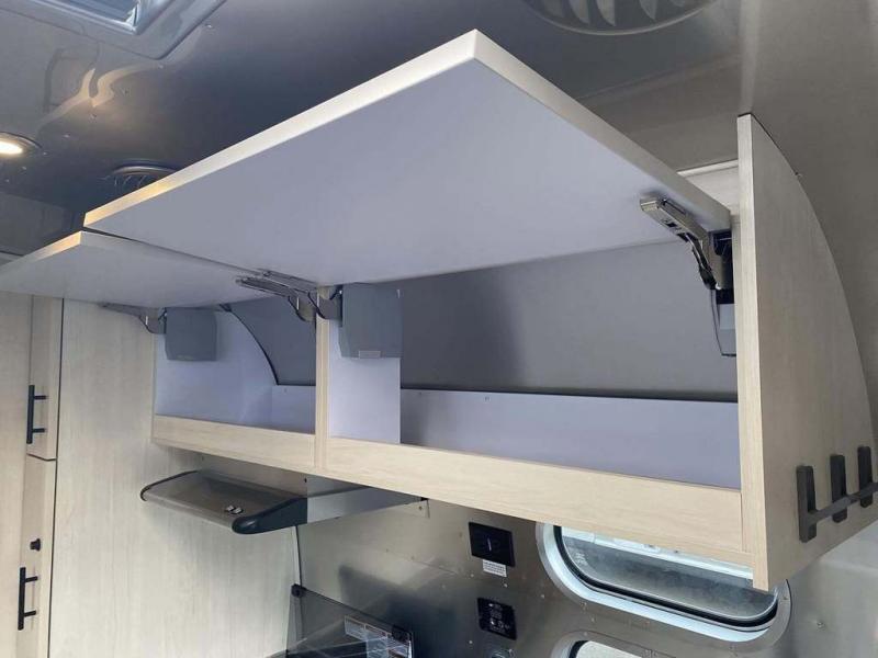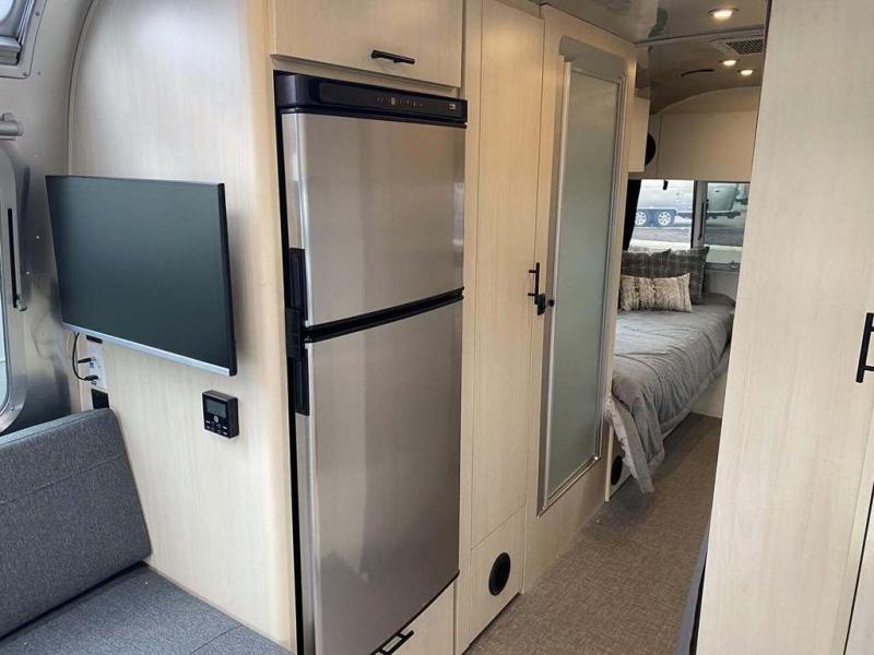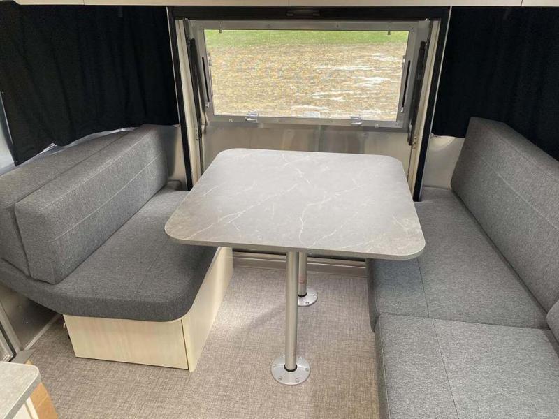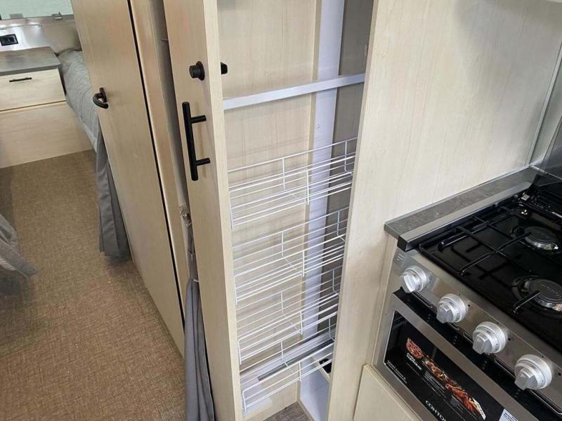 With each Flying Cloud travel trailer by Airstream, there are two axles, and each is built for ease of towing, plus there is a rear-view camera to make reversing and parking easier, and stainless steel front stone guards to protect the lower segments from road debris. The iconic Airstream design is created outside and inside by the semi-monocoque aluminum superstructure, the temperature reducing one-piece white aluminum roof, the panoramic front windows, and the stylish aluminum wheels. The interior will have you feeling right at home with handcrafted cabinetry, plenty of storage and counter space, sleek roller blinds and blackout curtains, plus residential style faucets!