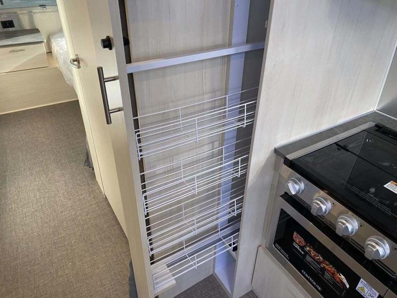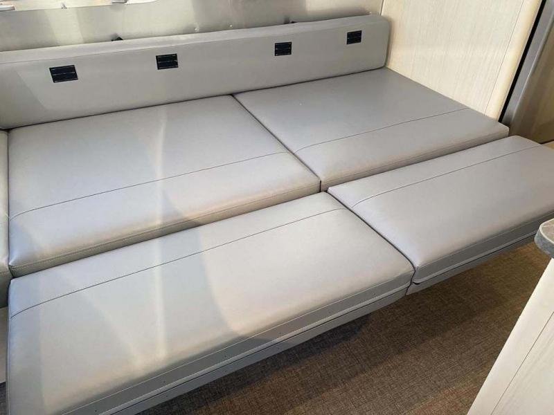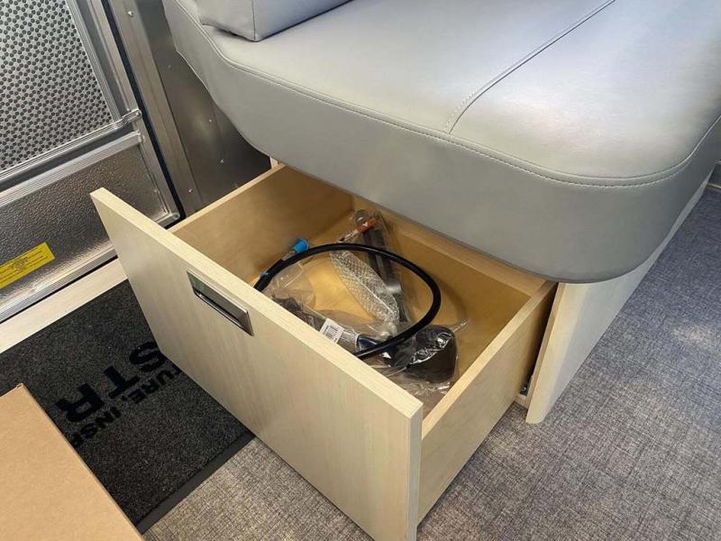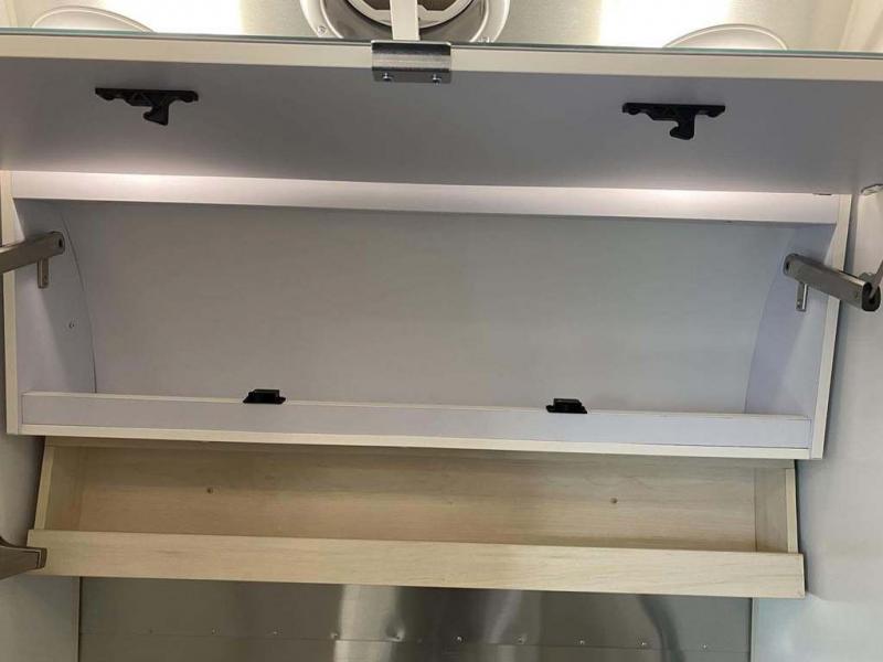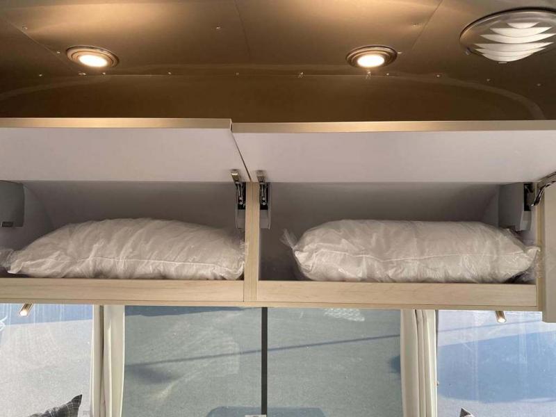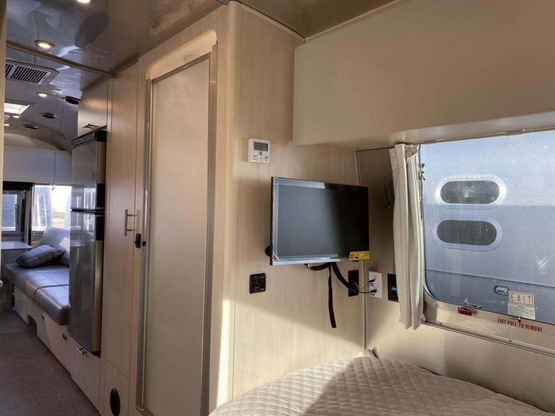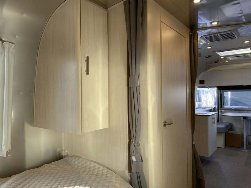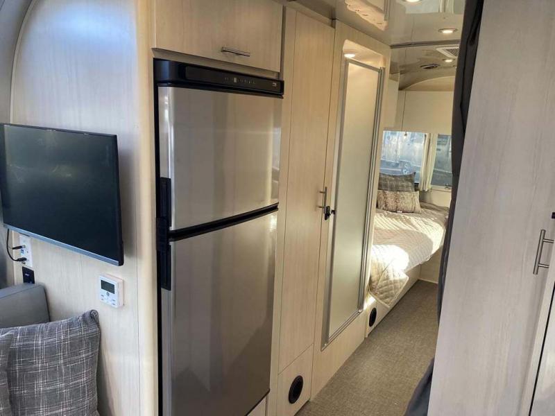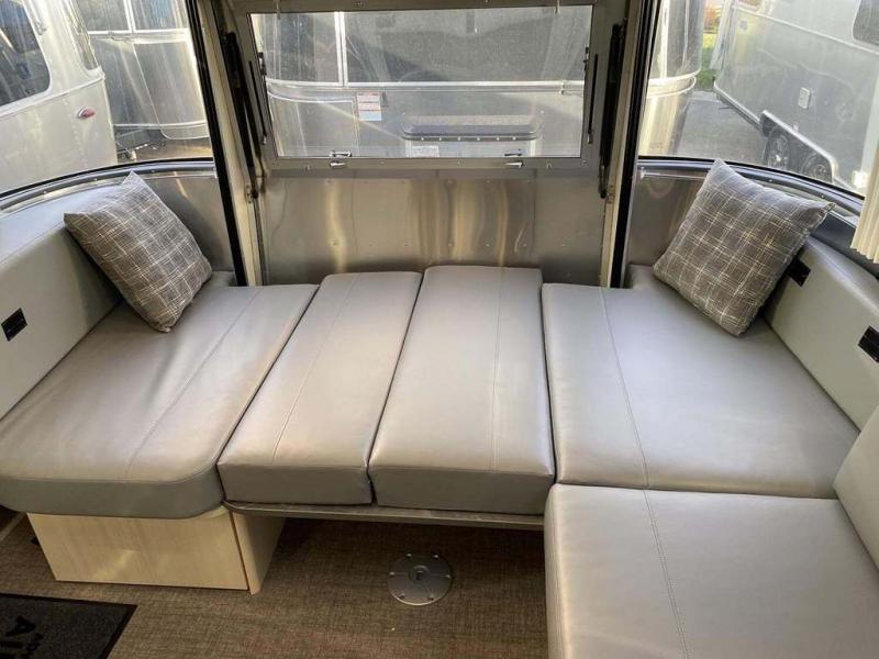 With each Flying Cloud travel trailer by Airstream, there are two axles, and each is built for ease of towing, plus there is a rear-view camera to make reversing and parking easier, and stainless steel front stone guards to protect the lower segments from road debris. The iconic Airstream design is created outside and inside by the semi-monocoque aluminum superstructure, the temperature reducing one-piece white aluminum roof, the panoramic front windows, and the stylish aluminum wheels. The interior will have you feeling right at home with handcrafted cabinetry, plenty of storage and counter space, sleek roller blinds and blackout curtains, plus residential style faucets!