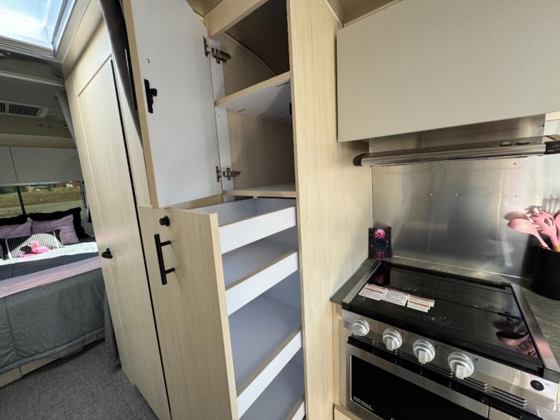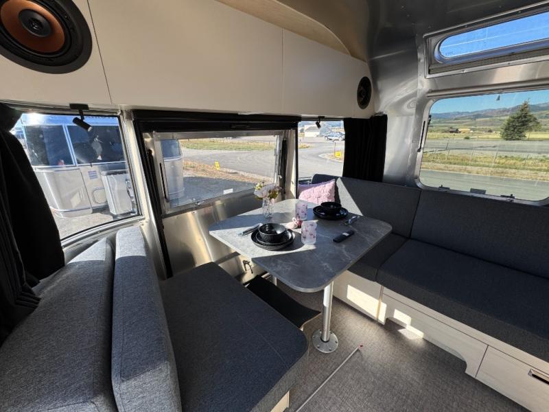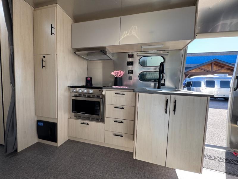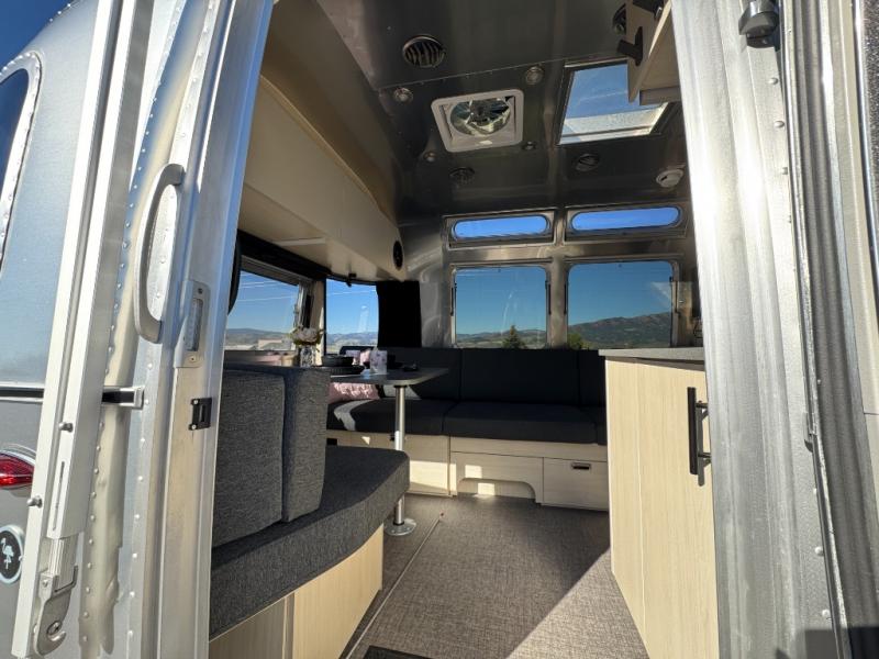 The family-friendly and popular Flying Cloud travel trailers by Airstream are built for ease of towing with a rear-view camera to make reversing and parking easier and stainless steel front stone guards to protect the lower segments from road debris. The iconic Airstream design is created outside and inside by the semi-monocoque aluminum superstructure, the temperature reducing one-piece white aluminum roof, the panoramic front windows, and the stylish aluminum wheels. The interior will have you feeling right at home with handcrafted cabinetry, plenty of storage and counter space, sleek roller blinds and blackout curtains, plus residential style faucets!