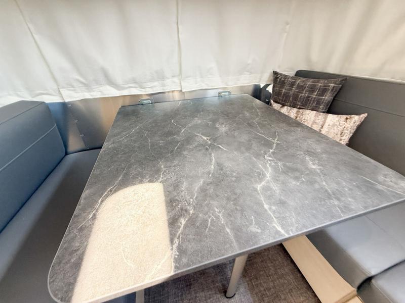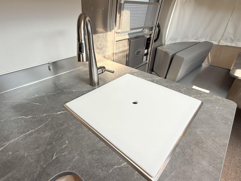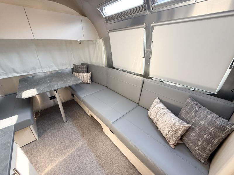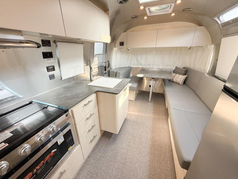 The family-friendly and popular Flying Cloud travel trailers by Airstream are built for ease of towing with a rear-view camera to make reversing and parking easier and stainless steel front stone guards to protect the lower segments from road debris. The iconic Airstream design is created outside and inside by the semi-monocoque aluminum superstructure, the temperature reducing one-piece white aluminum roof, the panoramic front windows, and the stylish aluminum wheels. The interior will have you feeling right at home with handcrafted cabinetry, plenty of storage and counter space, sleek roller blinds and blackout curtains, plus residential style faucets!