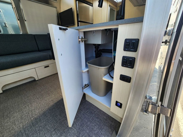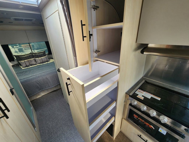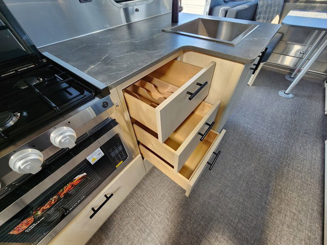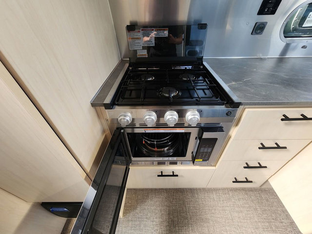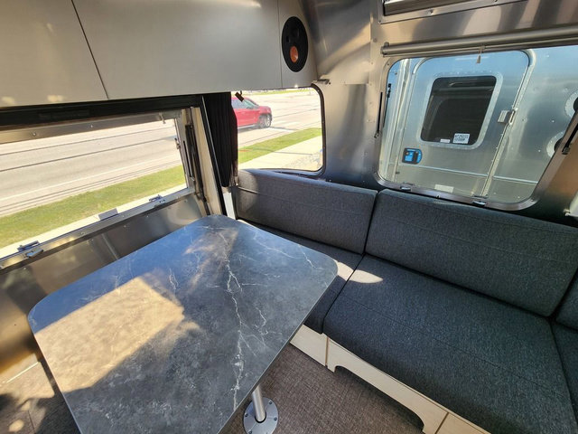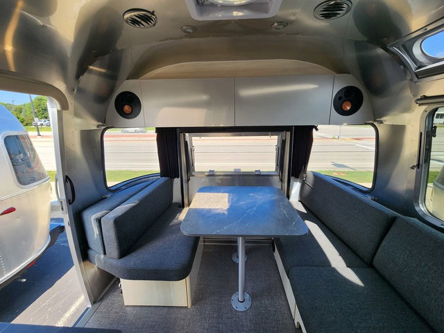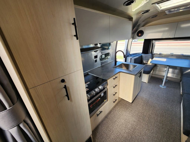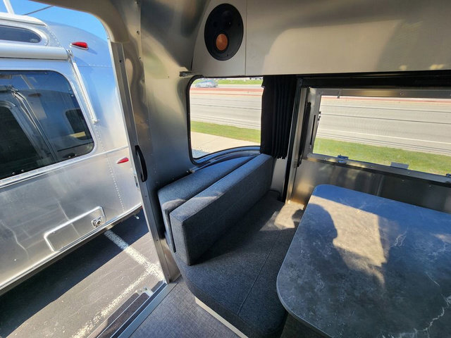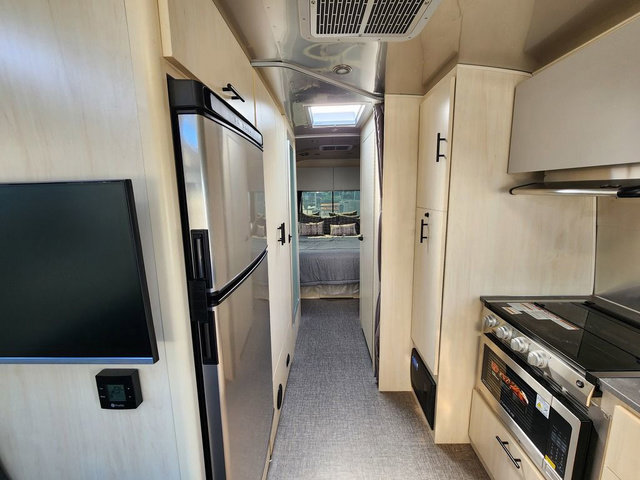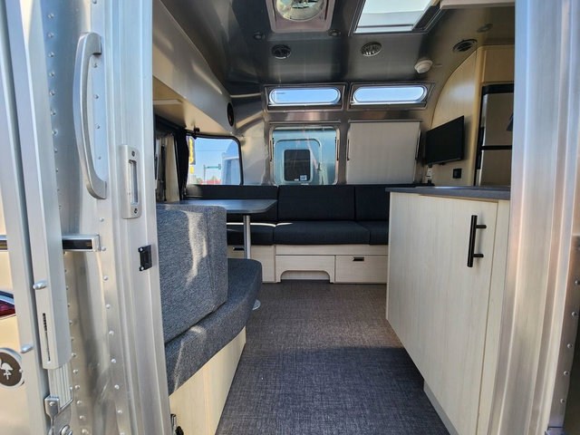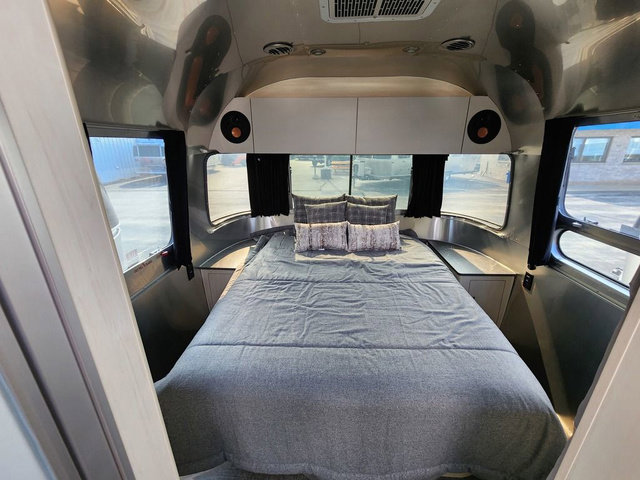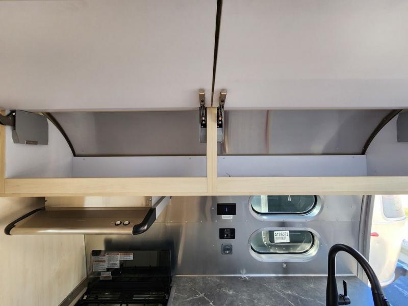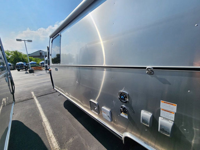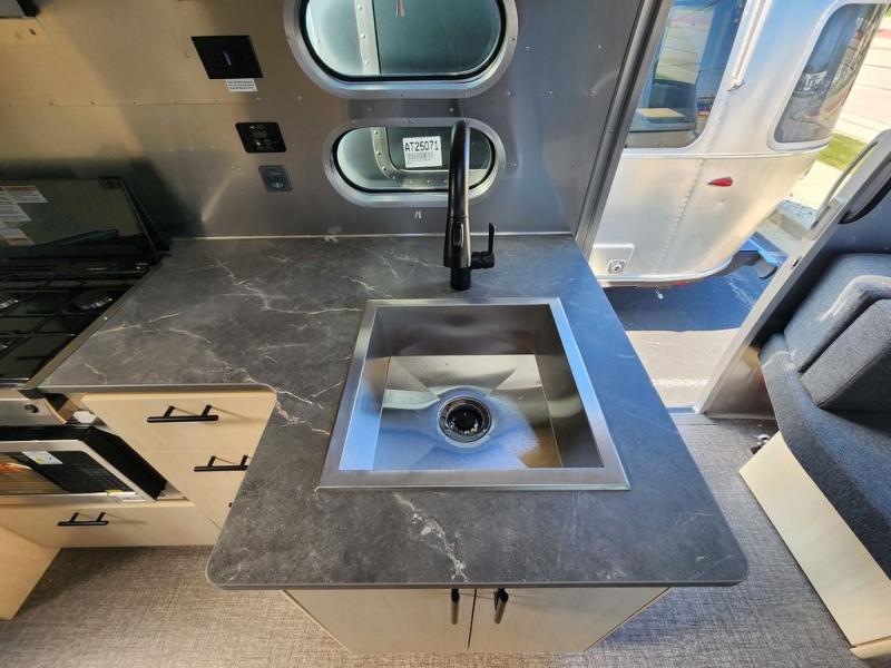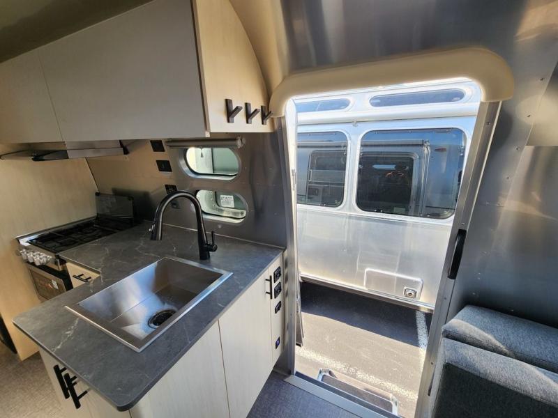 The family-friendly and popular Flying Cloud travel trailers by Airstream are built for ease of towing with a rear-view camera to make reversing and parking easier and stainless steel front stone guards to protect the lower segments from road debris. The iconic Airstream design is created outside and inside by the semi-monocoque aluminum superstructure, the temperature reducing one-piece white aluminum roof, the panoramic front windows, and the stylish aluminum wheels. The interior will have you feeling right at home with handcrafted cabinetry, plenty of storage and counter space, sleek roller blinds and blackout curtains, plus residential style faucets!
