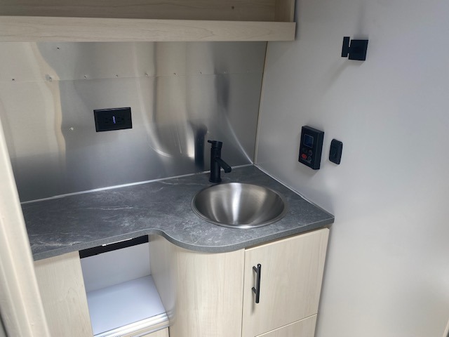 With each Flying Cloud travel trailer by Airstream, there are two axles, and each is built for ease of towing, plus there is a rear-view camera to make reversing and parking easier, and stainless steel front stone guards to protect the lower segments from road debris. The iconic Airstream design is created outside and inside by the semi-monocoque aluminum superstructure, the temperature reducing one-piece white aluminum roof, the panoramic front windows, and the stylish aluminum wheels. The interior will have you feeling right at home with handcrafted cabinetry, plenty of storage and counter space, sleek roller blinds and blackout curtains, plus residential style faucets!