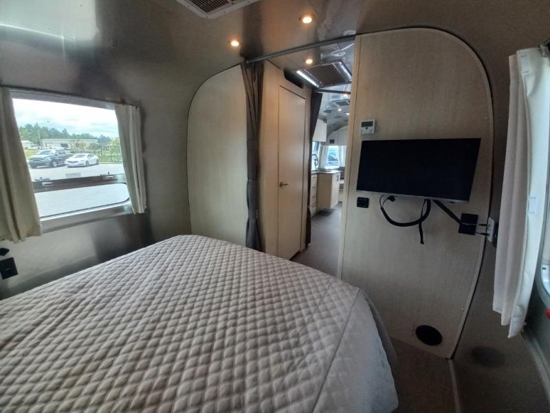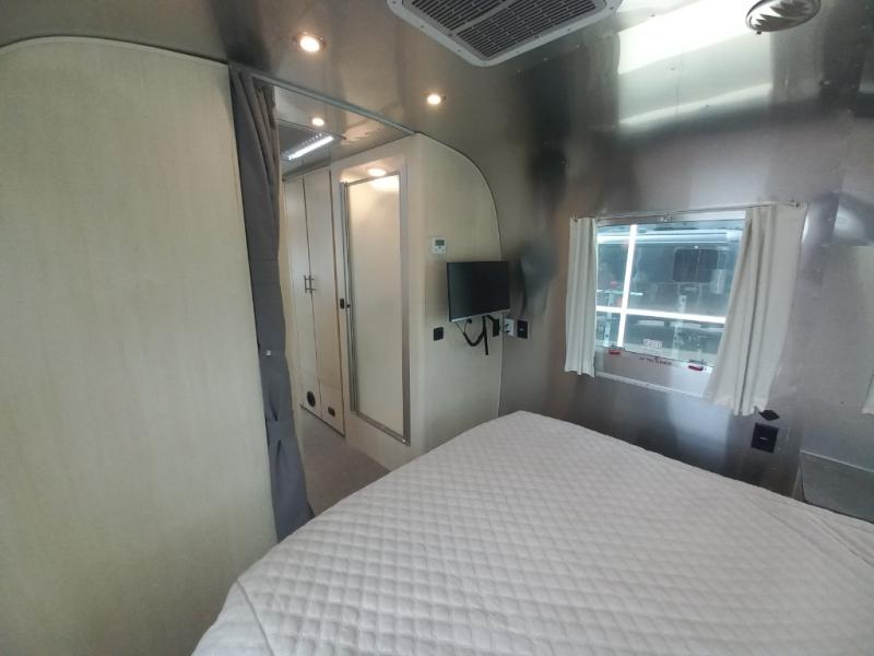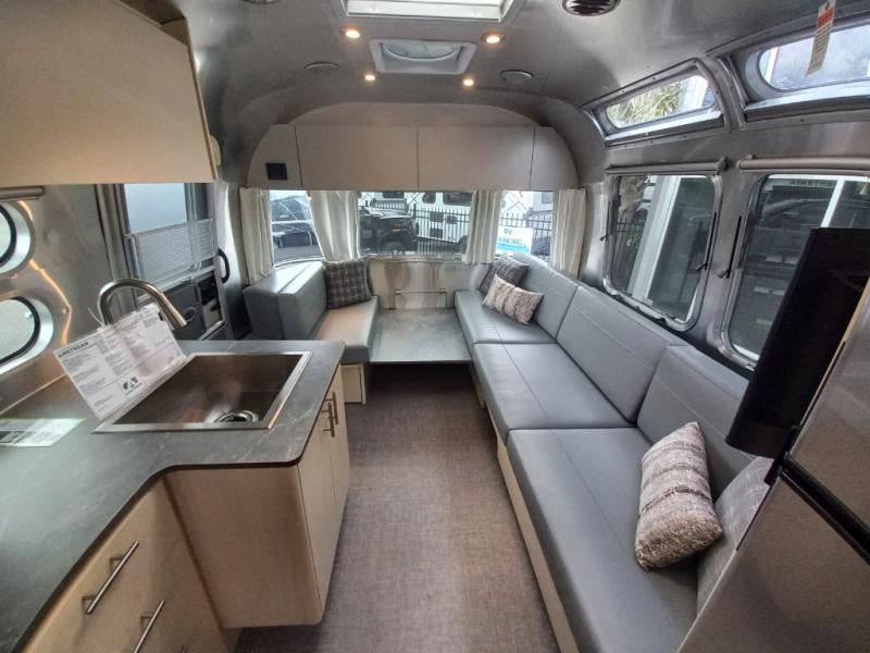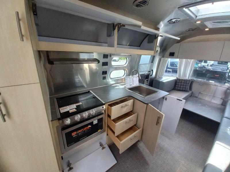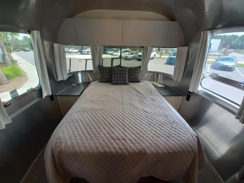 The family-friendly and popular Flying Cloud travel trailers by Airstream are built for ease of towing with a rear-view camera to make reversing and parking easier and stainless steel front stone guards to protect the lower segments from road debris. The iconic Airstream design is created outside and inside by the semi-monocoque aluminum superstructure, the temperature reducing one-piece white aluminum roof, the panoramic front windows, and the stylish aluminum wheels. The interior will have you feeling right at home with handcrafted cabinetry, plenty of storage and counter space, sleek roller blinds and blackout curtains, plus residential style faucets!