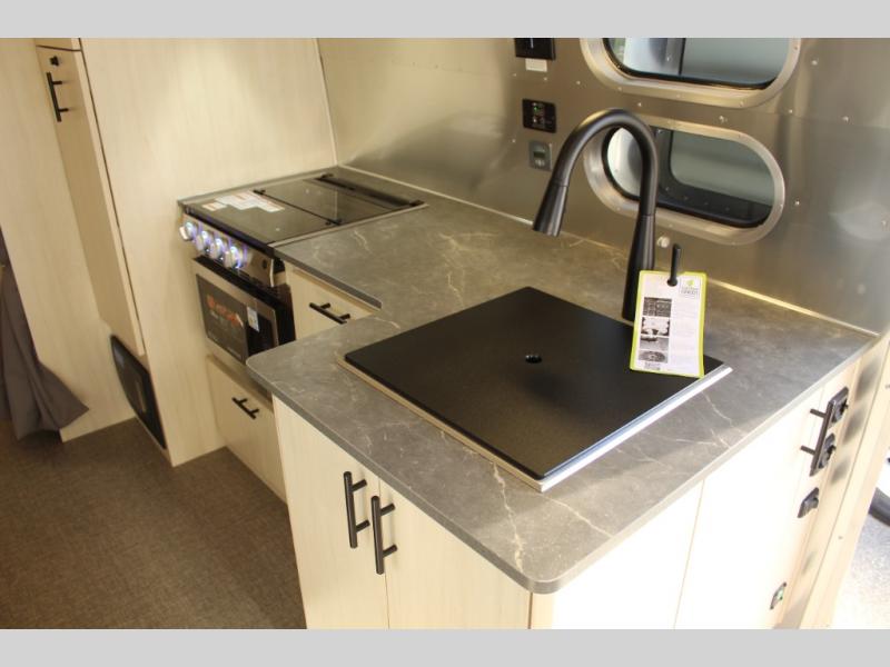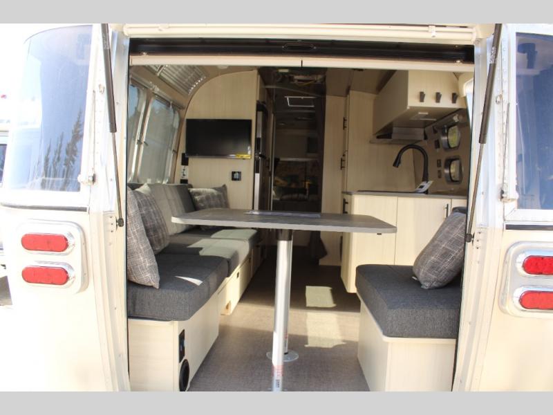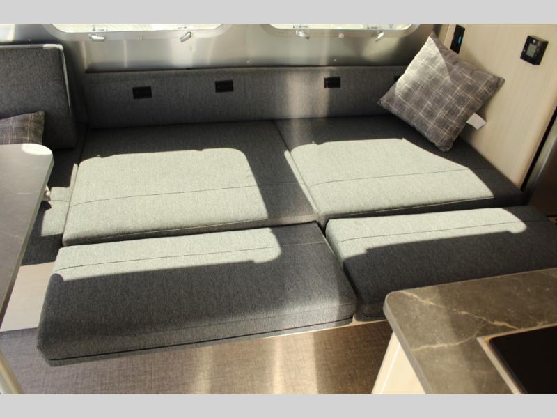 The family-friendly and popular Flying Cloud travel trailers by Airstream are built for ease of towing with a rear-view camera to make reversing and parking easier and stainless steel front stone guards to protect the lower segments from road debris. The iconic Airstream design is created outside and inside by the semi-monocoque aluminum superstructure, the temperature reducing one-piece white aluminum roof, the panoramic front windows, and the stylish aluminum wheels. The interior will have you feeling right at home with handcrafted cabinetry, plenty of storage and counter space, sleek roller blinds and blackout curtains, plus residential style faucets!