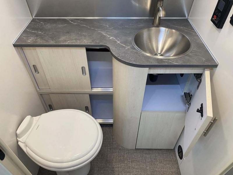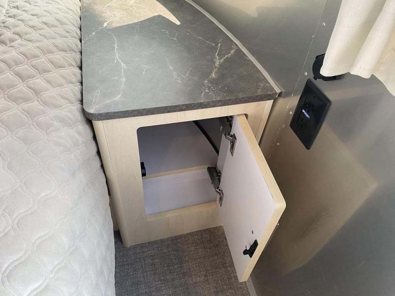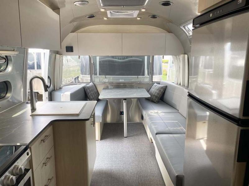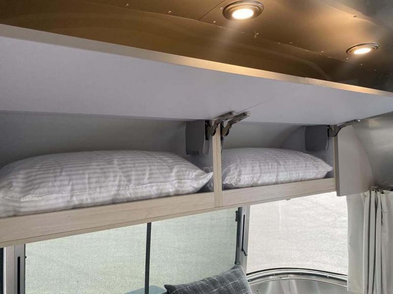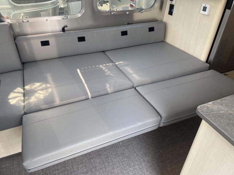 The family-friendly and popular Flying Cloud travel trailers by Airstream are built for ease of towing with a rear-view camera to make reversing and parking easier and stainless steel front stone guards to protect the lower segments from road debris. The iconic Airstream design is created outside and inside by the semi-monocoque aluminum superstructure, the temperature reducing one-piece white aluminum roof, the panoramic front windows, and the stylish aluminum wheels. The interior will have you feeling right at home with handcrafted cabinetry, plenty of storage and counter space, sleek roller blinds and blackout curtains, plus residential style faucets!