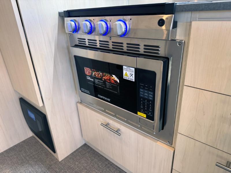Whether you stay at a campground or an RV park, you will love relaxing inside on the comfortable furniture and the pillowtop memory foam twin mattresses while gazing out all the windows and enjoying the natural lighting. The front master bedroom offers a center nightstand for perfect storage for small items and books, and the counter is perfect for displaying accessories and charging devices, while the dinette and lounging area can easily be converted into sleeping space when you have guests stay the night. The toilet and vanity are separate from the shower allowing two people to use the facilities at once. And the cook will have a spacious galley to make meals using the stove/microwave area with square sink, and the refrigerator can hold the leftovers that is opposite the stove. And you might even like to add a few options such as a front bunk option over the queen bed, an optional rear hatch and/or a window awning package.